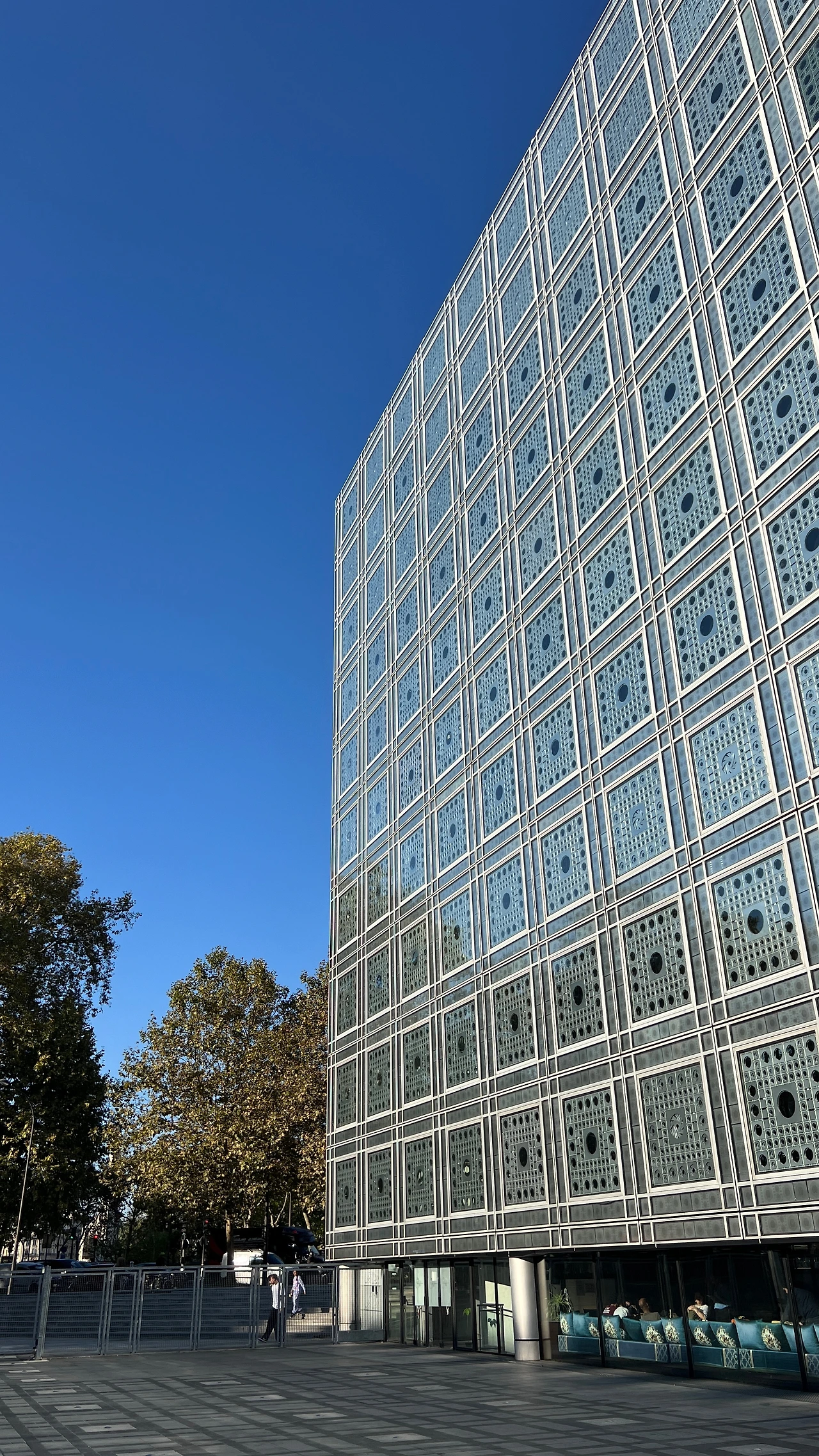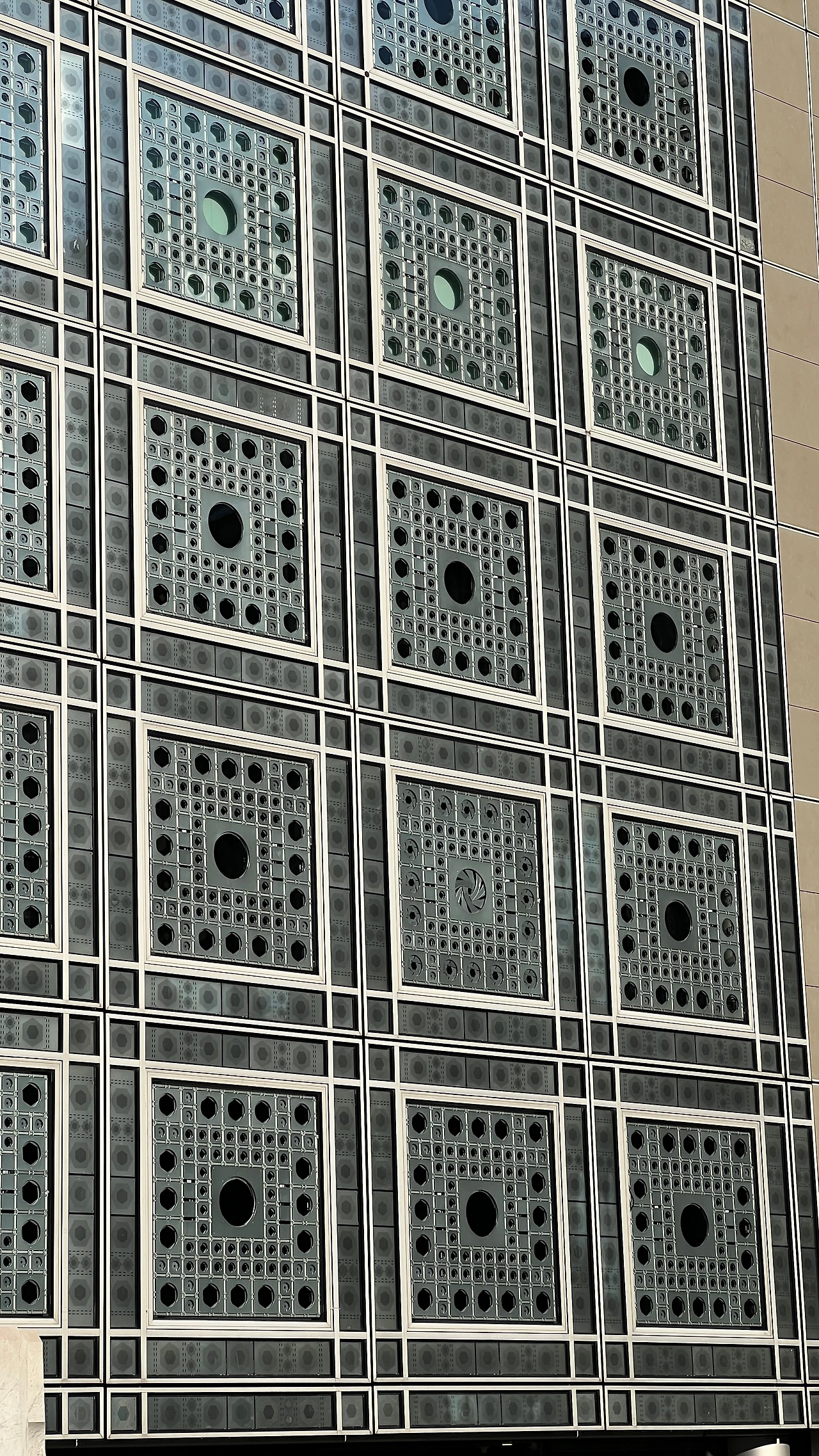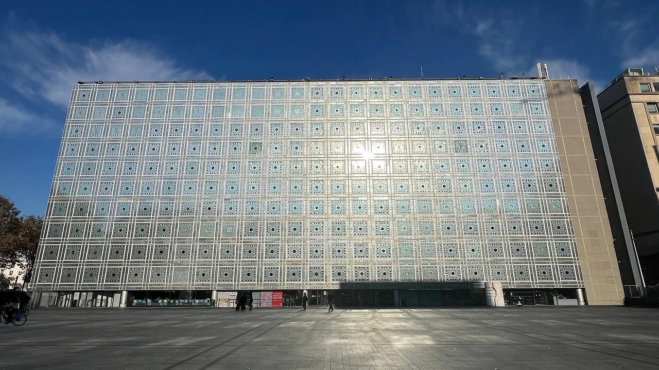 프랑스와 아랍권 국가 간 문화·학술 교류를 위해 설립된 복합 문화기관으로 아랍 전통 건축의 무크나이(목재 격자 차양)에서 착안한 빛 조절 기계장치가 건물 전면을 구성하고 있는 건물이다.