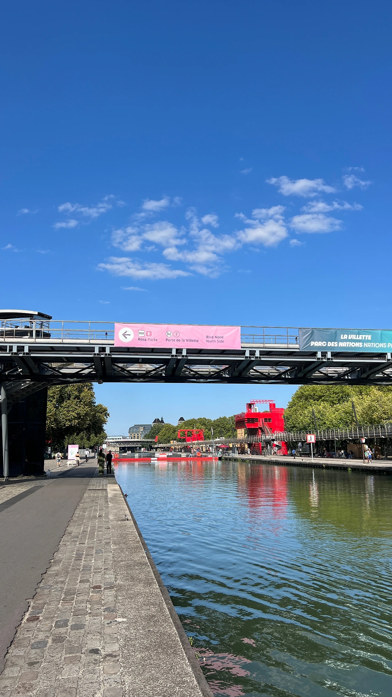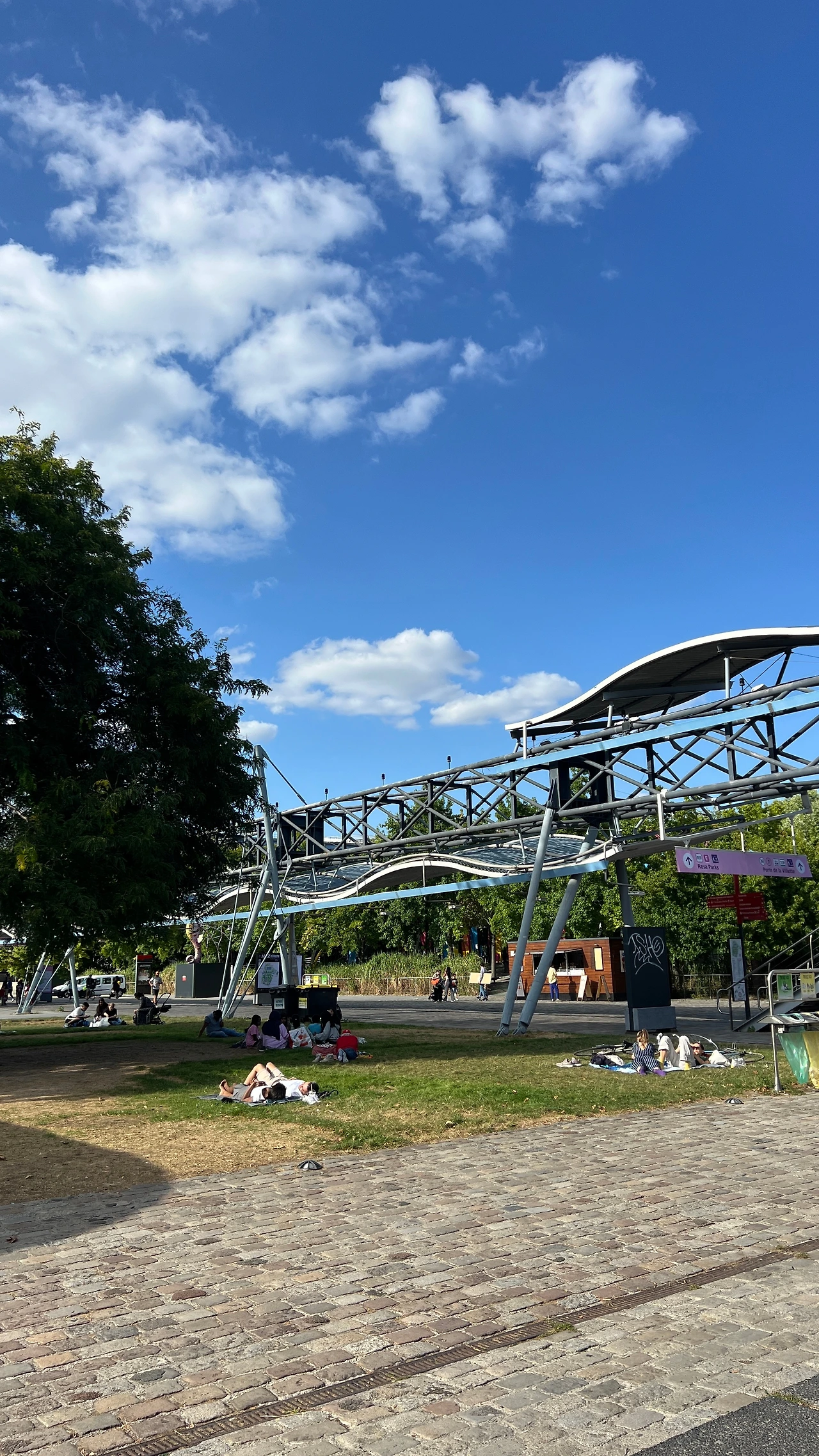 폴리(folly)라 불리는 빨간 구조물들이 포인트로 공원 여기저기 흩어져 있고 울타리나 문이 없어서 개방적인 것이 특징이지만 우리가 방문한 기간에는 올림픽 때문에 이곳에 Club France라는 팬 존(fan zone)이 설치되어 통제 중인 곳도 있었다.