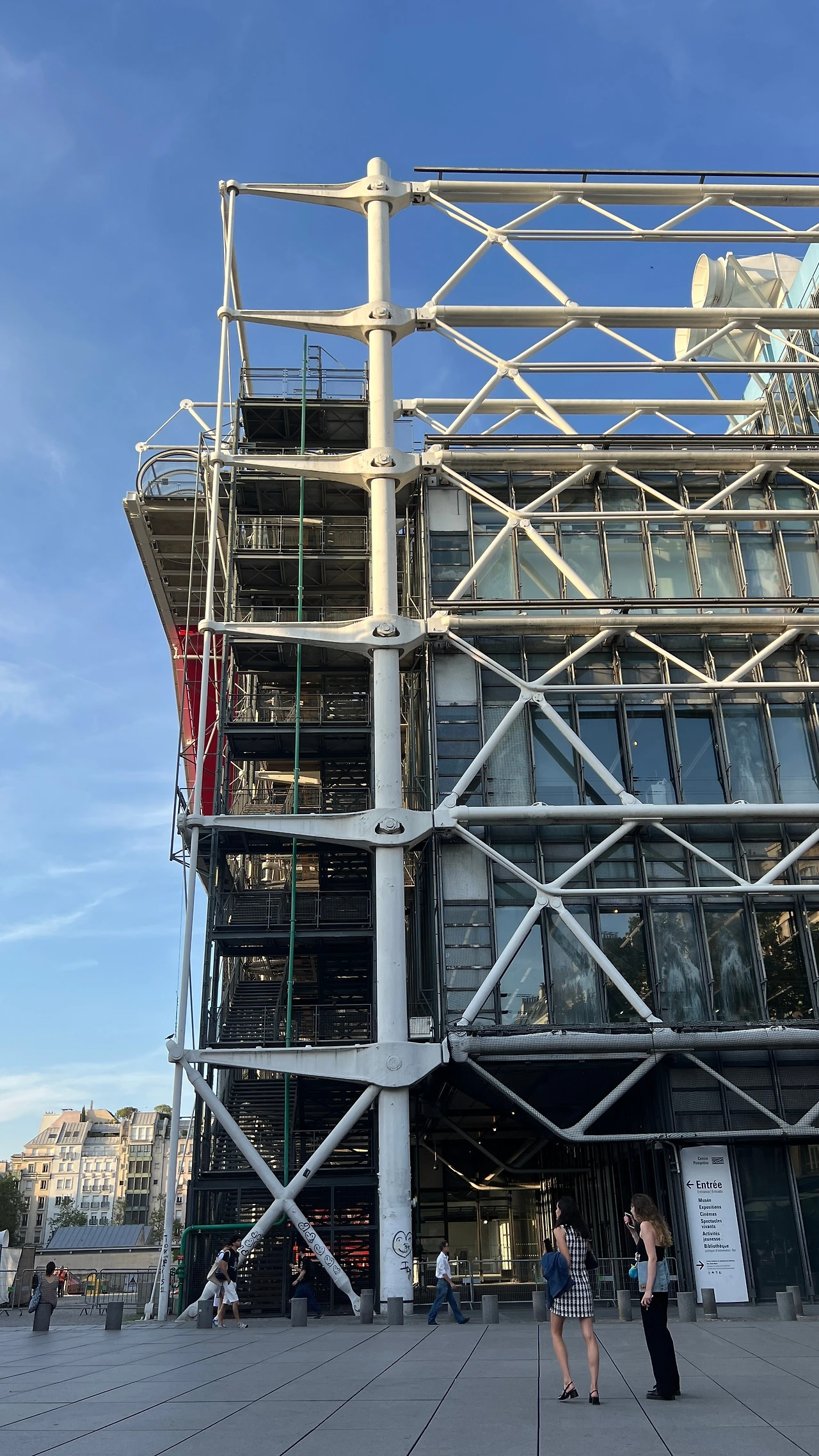 퐁피두 센터 건물 앞 광장(Plaza)은 거리공연이 펼쳐지고 휴식과 만남의 장소로 쓰이는 대중적인 공간으로 사용되고 있었다. 엘리트들의 예술공간인 미술관이 누구나 접근할 수 있는 문화시설이라는 프랑스의 문화정책 전환의 상징적인 건물로도 평가받는다고 한다.