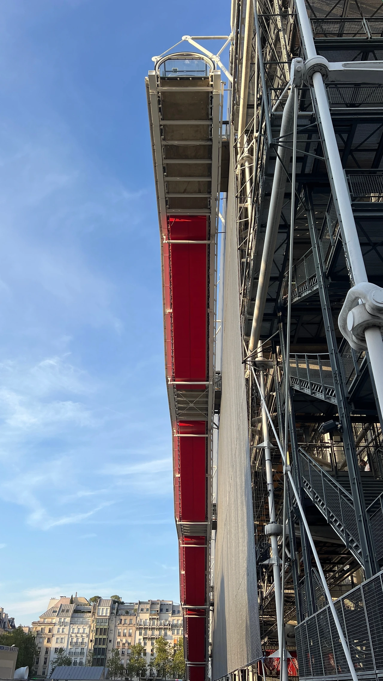 건물 내부에 있어야 할 에스컬레이터나 설비 배관등을 건물 외부에 배치하여 마치 산업시설 같은 인상을 주는 건물이다. 퐁피두센터 또한 공장 같은 이미지 때문에 건축 당시 많은 혹평을 받았다고 하는데, 에펠탑이나 루브르 박물관의 유리 피라미드 등 현재 파리에서 가장 유명한 건축물들은 모두 당시의 평가가 좋지 못했던 거 같다.