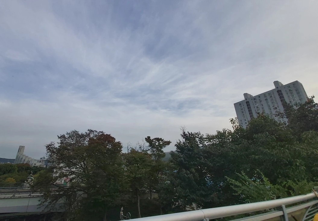구름 한 점 없는 파란 하늘을 바라보며 길을 걷다가