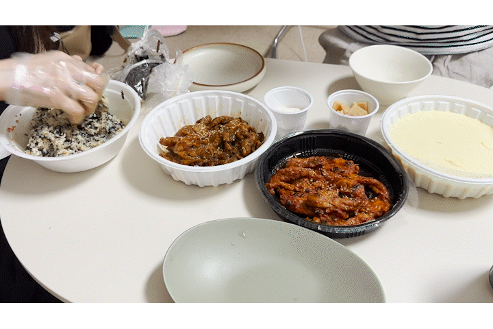야무지게 주먹밥 제조 중인 유부 친구, 영상 찍는 걸 보더니 손수 셀프줌인도 해주었다