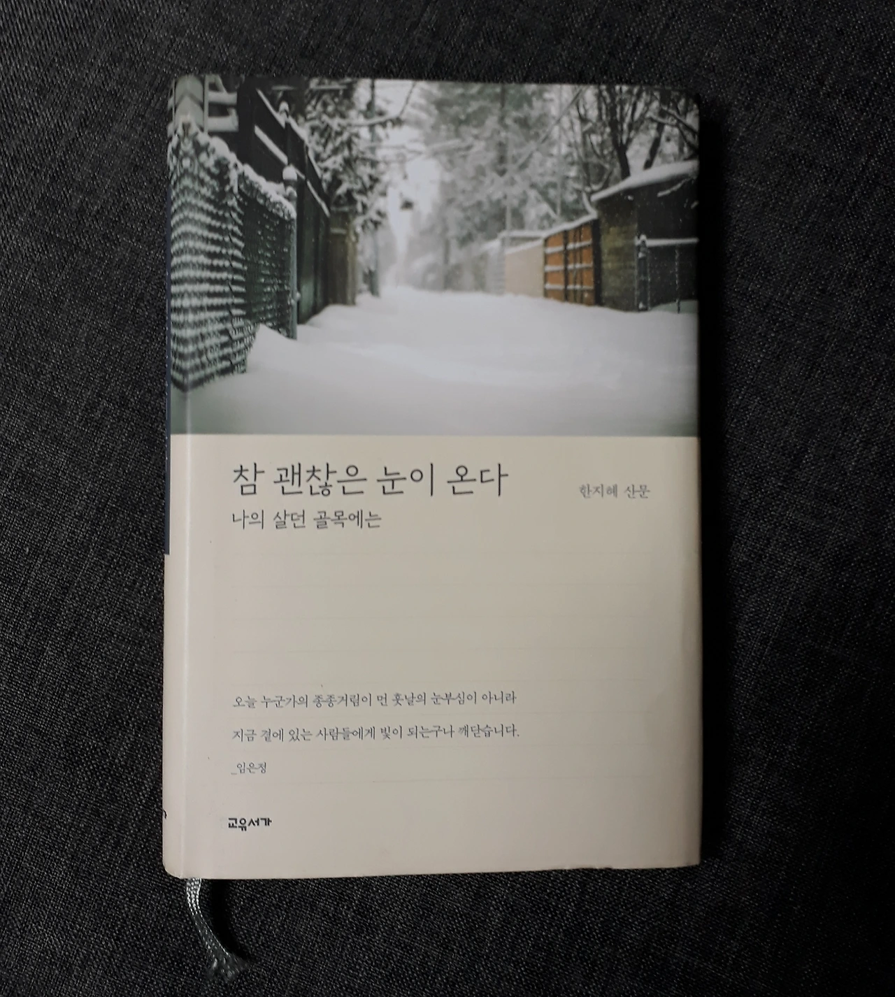 최용건 화백의 산문집 '조금은 가난해도 좋다면'이 자발적으로 선택한 가난의 기록이라면, 소설을 쓰는 한지혜 작가의 산문집 '참 괜찮은 눈이 온다'는 '나의 살던 골목에는'이라는 부제가 나타내듯 작가의 가난했던 성장기의 기록이다. 실제로 책의 많은 부분이 작가가 성장하고 소설가로 등단한 이후의 내용이지만 작가의 가난했던 어린 시절의 이야기가 워낙 인상적이었고, 작가가 된 이후의 세상을 바라보는 작가의 시각에는 가난했던, 그러나 따뜻했던 어린 날의 체험이 바탕이 되었다는 점에서 성장의 기록으로 보아도 무방하지 싶다.