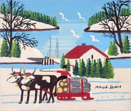 1966년 여름, 우리 가족은 마셜타운 1번 국도 가까이에 있던 모드의 작은 집에 처음 방문했습니다. 에버릿은 우리에게 집으로 들어오라고 했어요. 페인트와 캔버스에 둘러싸인 채 창가에 앉아 있던 모드는 텔레비전용 접이식 테이블을 작업대 삼아 그림을 그리고 있었습니다. 나와 부모님은 그림을 여러 점 사려고 했지만, 모그는 한 사람이 한 점씩만 살 수 있다고 했습니다.