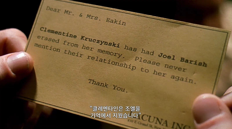 하지만 조엘이 마주한 건 반갑게 인사하는 자신을 처음 보는 사람처럼 의아하게 바라보는 클레멘타인의 멍한 얼굴이었다.