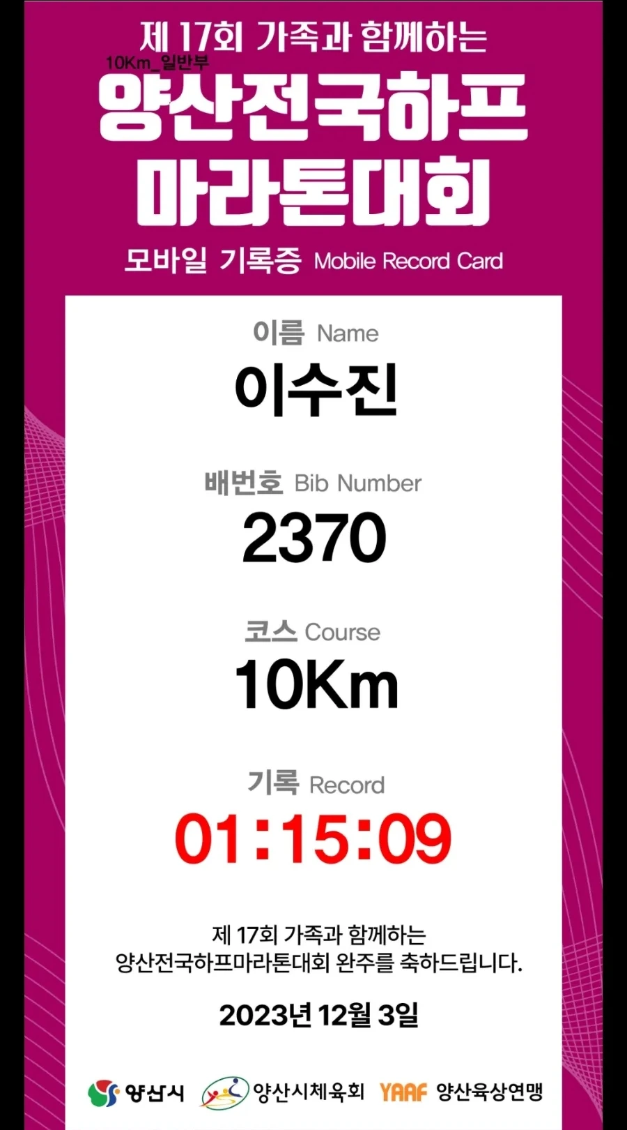10km 마라톤을 완주하고야 말았던 것이다!