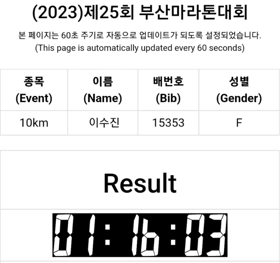 결과는 다행히도 예상대로 걷다가 뛰다가 하다 보니 45분 만에 골인 선에 통과를 했다.