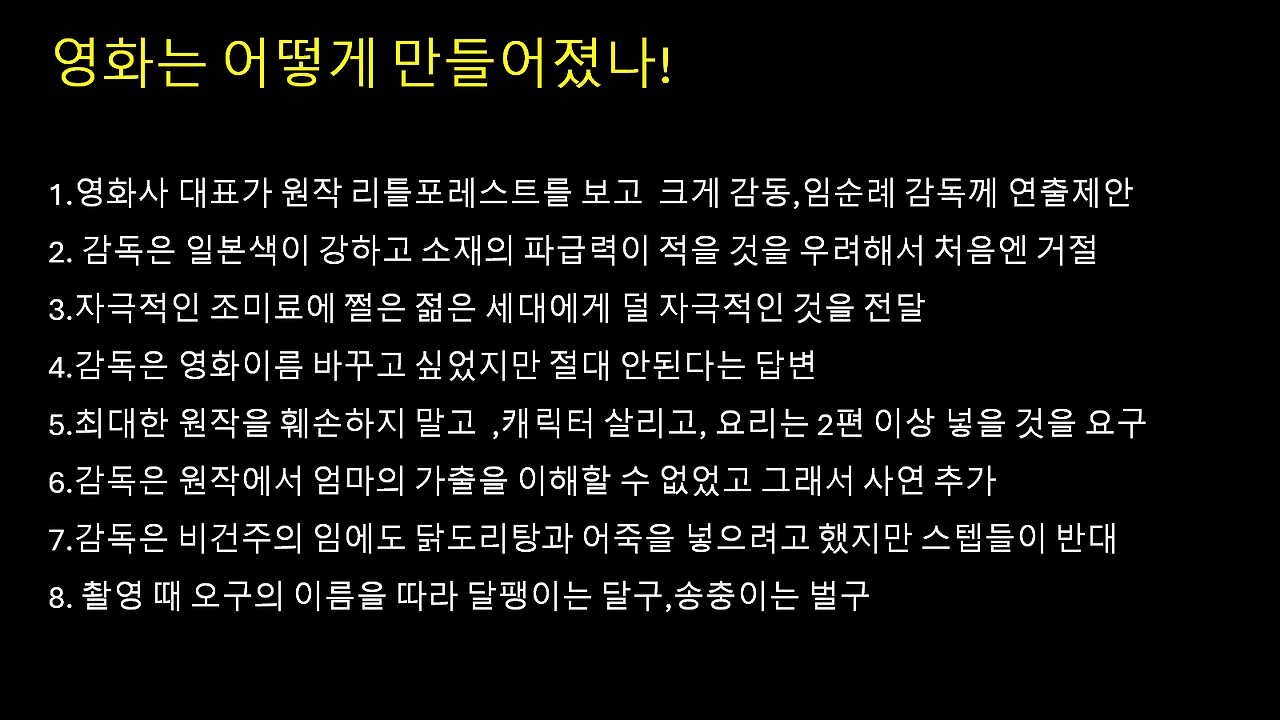 이 영화를 준비하다가 감독님을 더욱더 존경하게 되었습니다.
