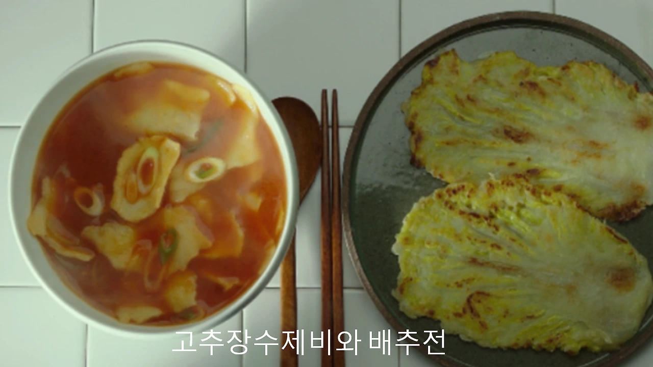 저는 이 장면을 보는 순간 바로 수제비와 배추 전을 만들어 먹었습니다. ㅎㅎ