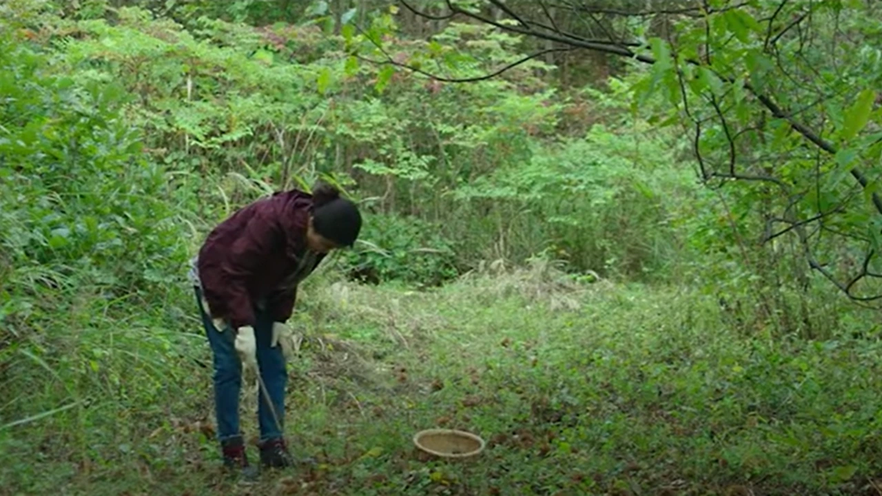 뭔가 방법이 있는 듯… 갑자기 밖으로 나가 꽁꽁 얼어 있는 배추를 뽑습니다.
