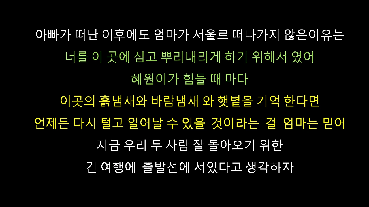 시험, 연애, 취업 뭐 하나도 뜻대로 되지 않는 혜원은 도시 생활에 몸과 마음이 지쳐서 잠시 일정을 멈추고 혜원은 고향집으로 돌아옵니다.