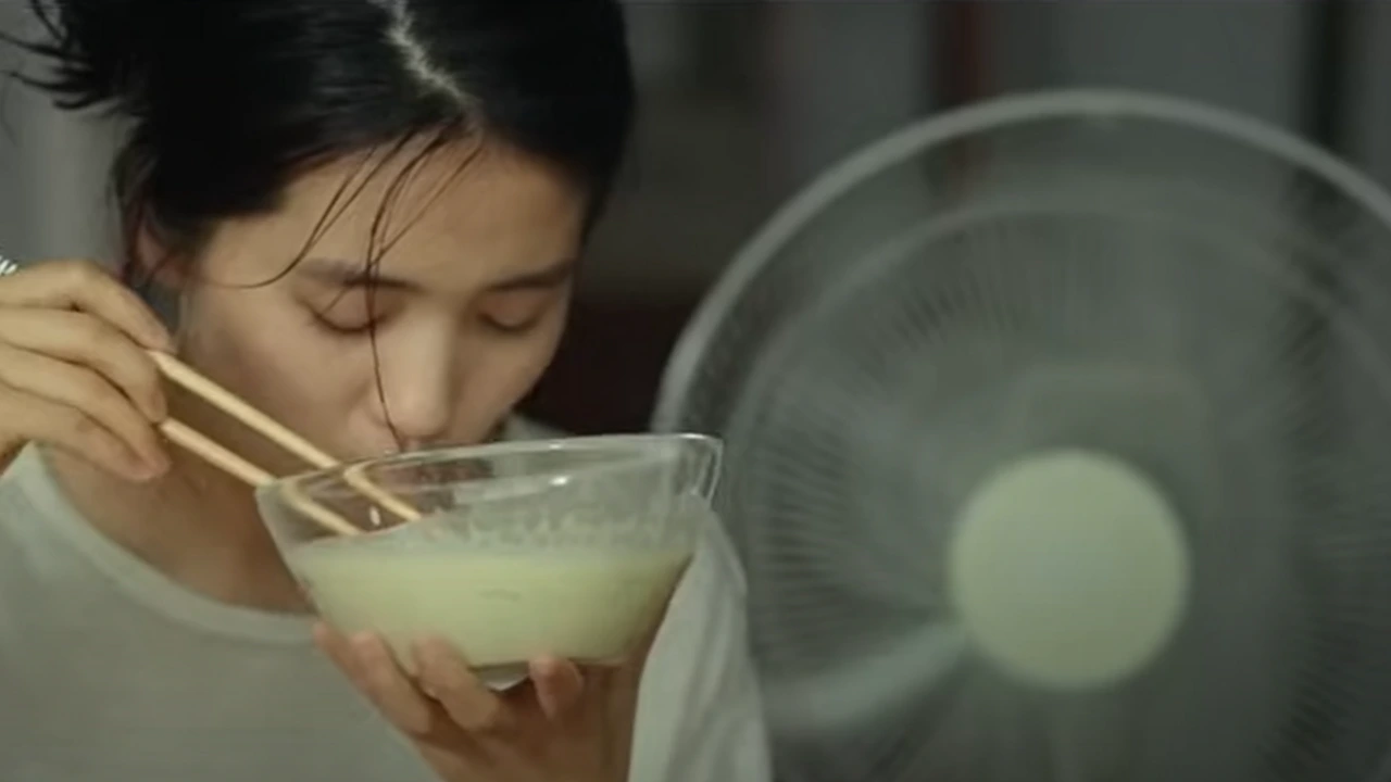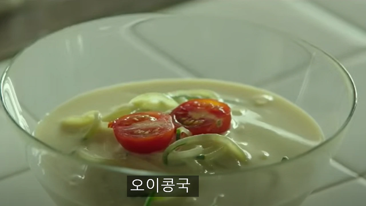 샤워 후 선풍기 앞에서 먹는 오이콩국을 먹으면서