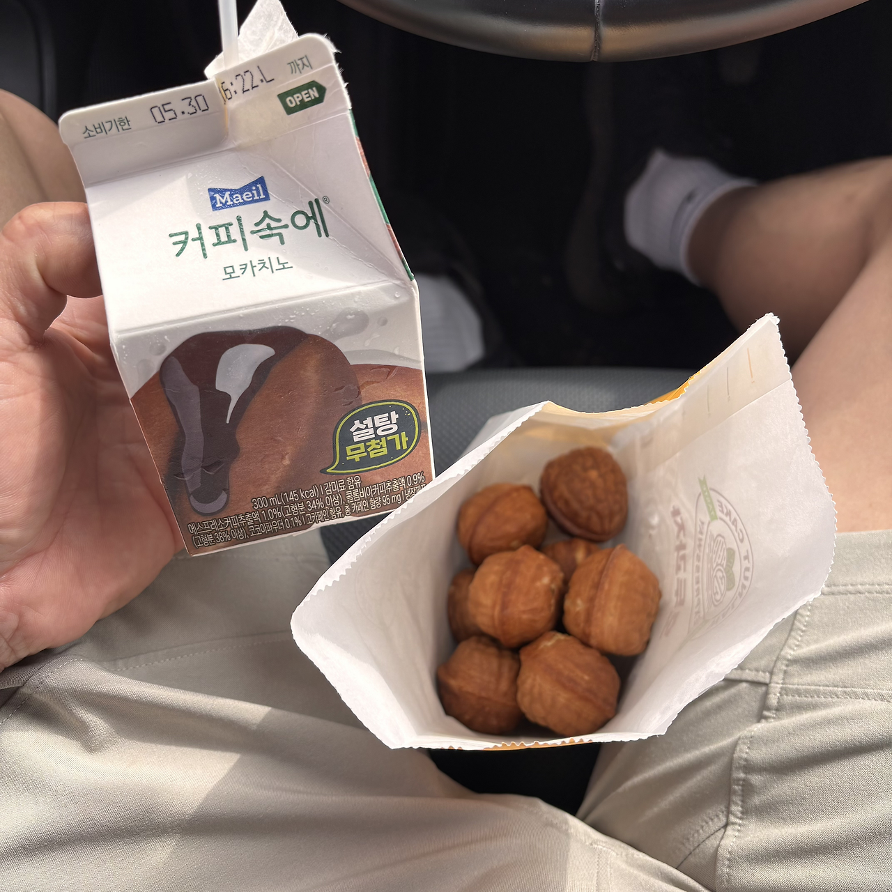 나의 최애 음식 호두과자+초코커피우유 조합.