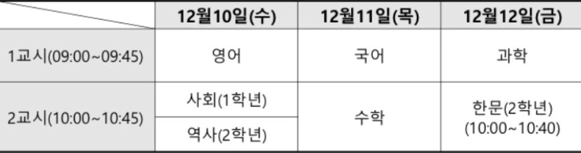기말고사 시간표다.