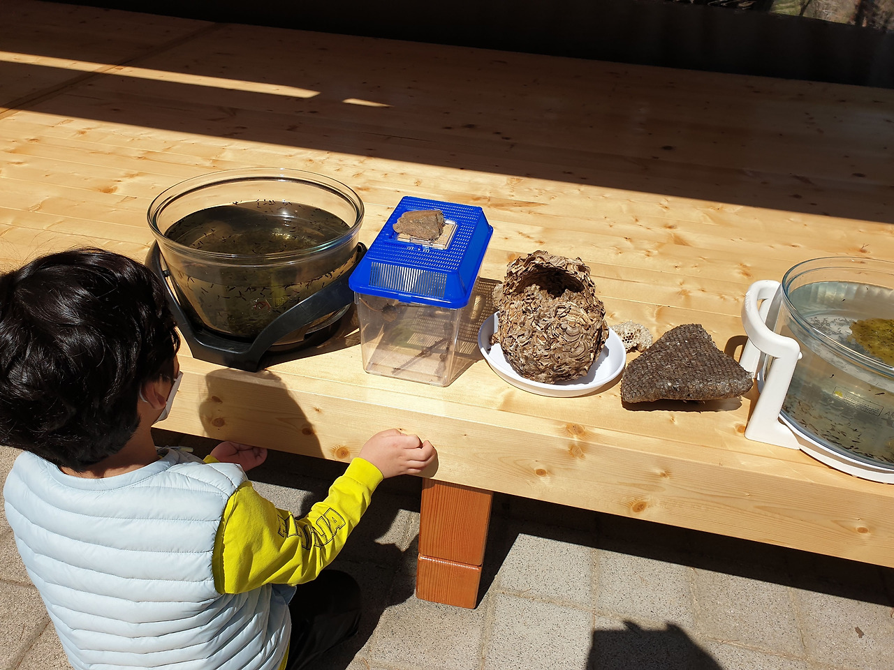 클라이밍하기, 도롱뇽 알과 벌집 관찰하기, 잉어잡기