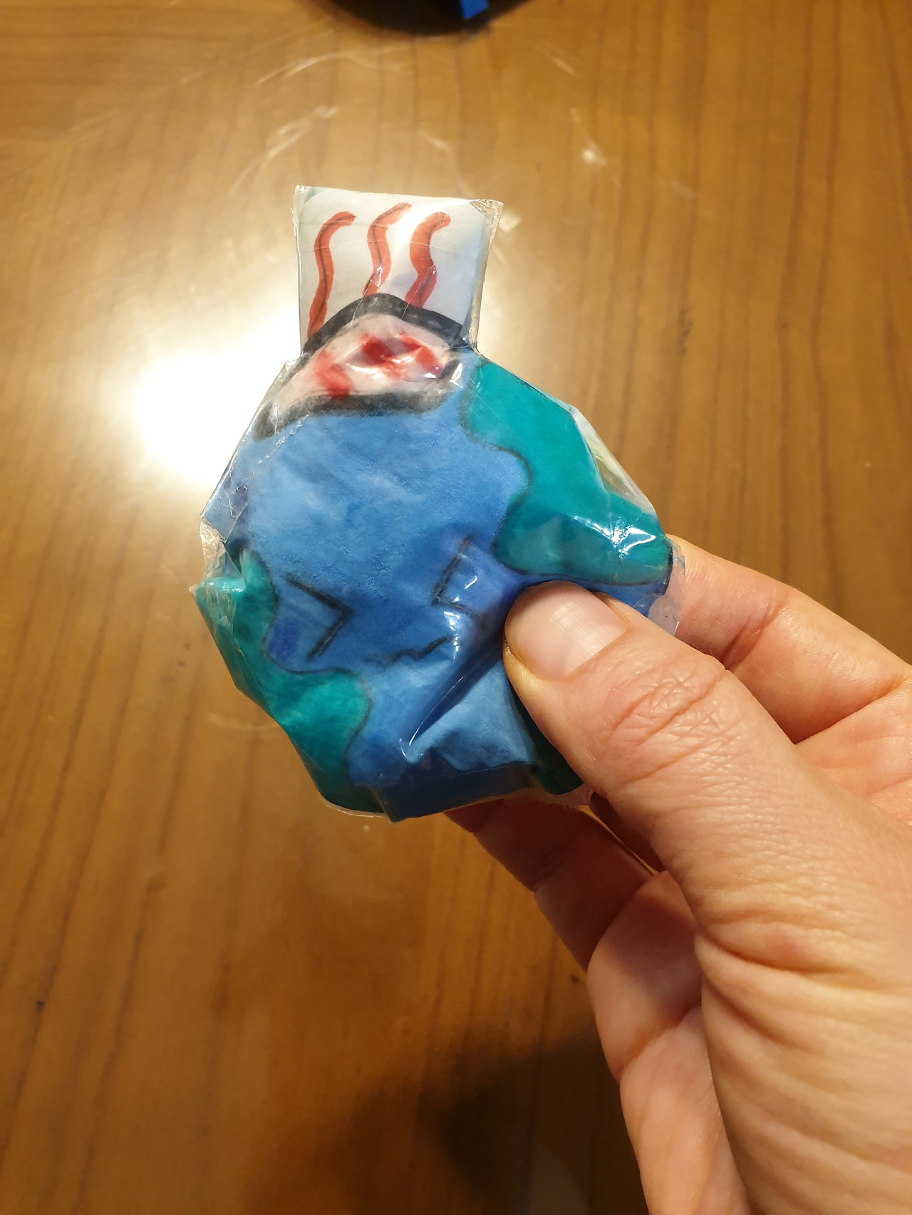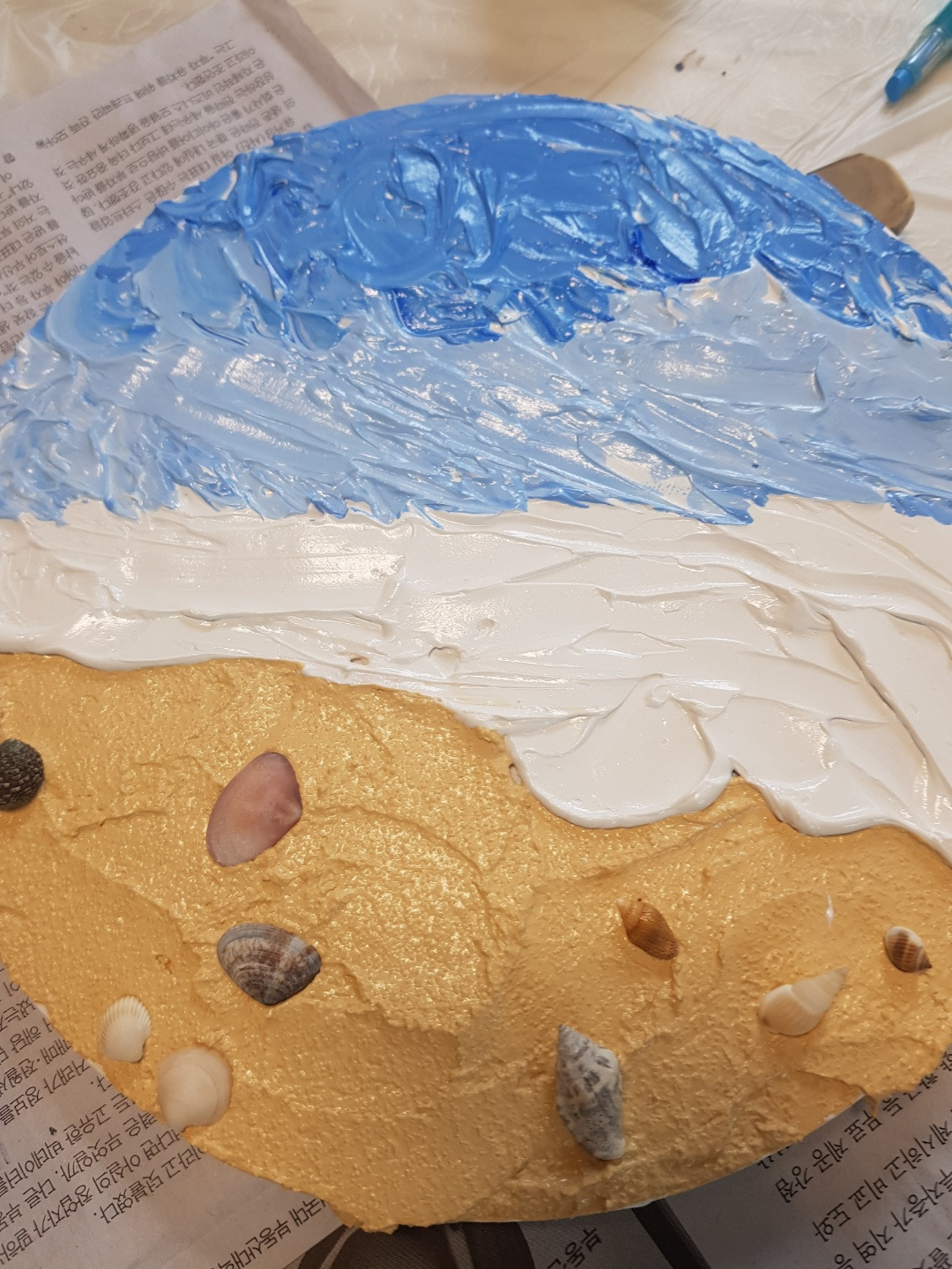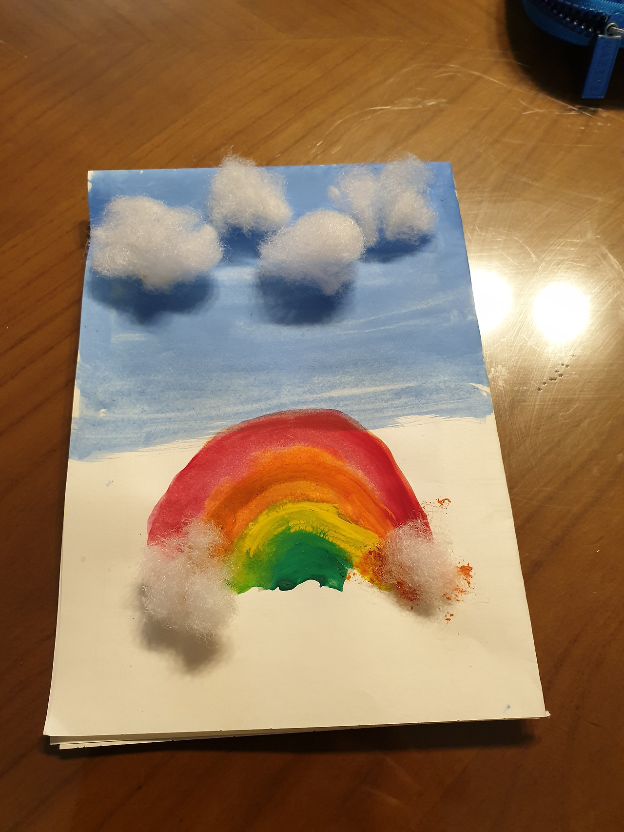 인형을 뜯어 빼낸 솜으로 만든 무지개 하늘과 구름, 휴지를 물감에 섞어 표현한 '새벽', '지구가 아파요' 말랑이의 옆면