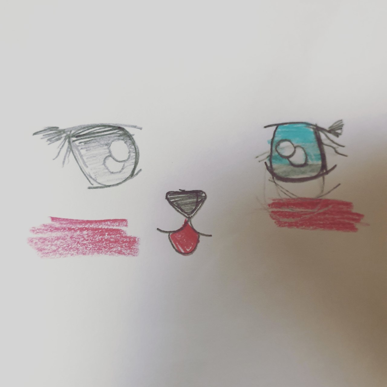 강아지의 눈, 코, 입 그리고 직접 그리고 오리고 붙여서 학교에서 칭찬받은 그림