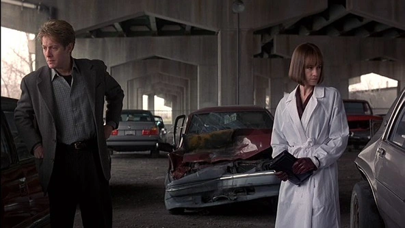 이 감독의 팬들은 아마도 '크로넨버그라면 기괴한 바디호러 작품이겠지'라는 기대를 가지고 극장에 갔을 것이다. 그러나 우리가 기대한 모습과는 달리 <크래쉬>는 바디 호러적 요소를 빼고 훨씬 건조하며 절제된 방식의 영화다. 나 역시 해당 작품을 처음 접했을 때는 이 영화가 <비디오드롬>이나 <엑시스텐즈>처럼 충격적인 비주얼을 가지고 있을 것이라 예상했었다. 그렇지만 작품에서 피의 분출, 흘러내리는 피부 같은 객관적으로 ‘징그러운’ 것들은 찾아보기 힘들다. 대신 시트의 마찰과 잔뜩 긁힌 금속 표면 같은 표현들만이 존재한다. 비틀리는 육체 대신 <크래쉬>에서 강조되는 키워드는 ‘성적인 충동’이다. 그리고 감독은 그러한 추상적 개념들은 그려낼 재료로 뒤틀린 육체 대신 차가운 금속을 택한다. 작품을 통해 우리는 욕망의 분출이라는 뜨거운 감각을 금속 간의 충돌로 비유한 새로운 시도를 마주하게 된다.
