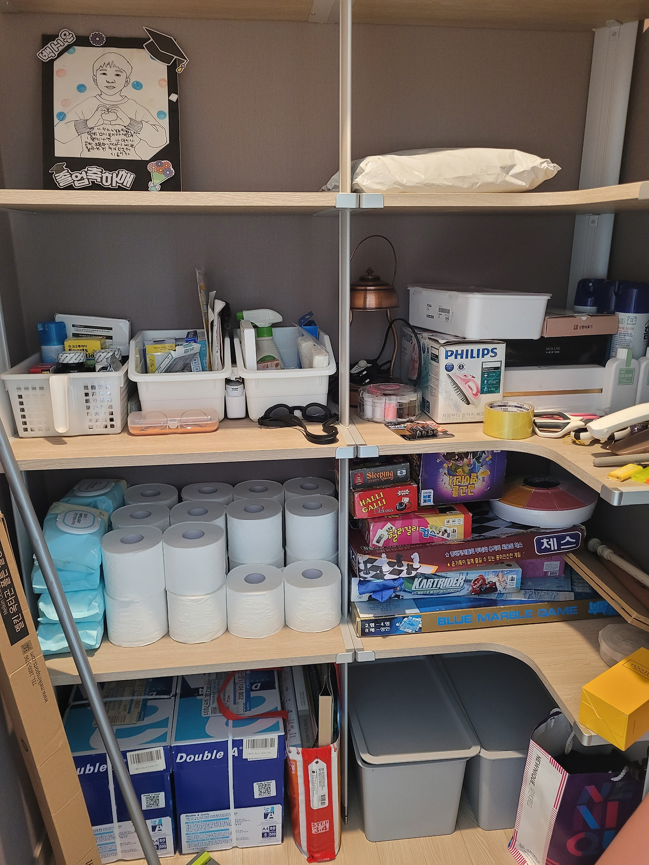 며칠 전이다. 평소에 정리 정돈을 잘해 둔다지만 팬트리 공간은 가끔 대대적인 정리가 필요하다. 우리 집에서 청소를 칼각으로 하는 아이는 둘째다. 야간 강의가 있거나 내가 늦은 귀가를 할 때면 아이는 깔끔하게 집안을 정리해 두어서 귀가하는 내게 기쁨을 선물한다. 스스로 원한 적이 없지만 어느새 청소에 진심이 된 첫째와 둘째가 며칠 전에 우리 집 팬트리를 정리했다. 막내 동생이 좋아하는 놀잇감은 막내의 키높이에 맞게, 약품박스도 한눈에 보이도록, 급하게 사용될 것들은 팬트리 문을 열면 바로 찾을 수 있도록 우리 집 생활양식에 맞게 말끔하게 정리해 놓았다. 며칠 째, 팬트리를 열면 기분이 좋아진다. 우리 아이들이 이렇게 말쑥하게 자라고 있나 싶어서 안심이 된다.