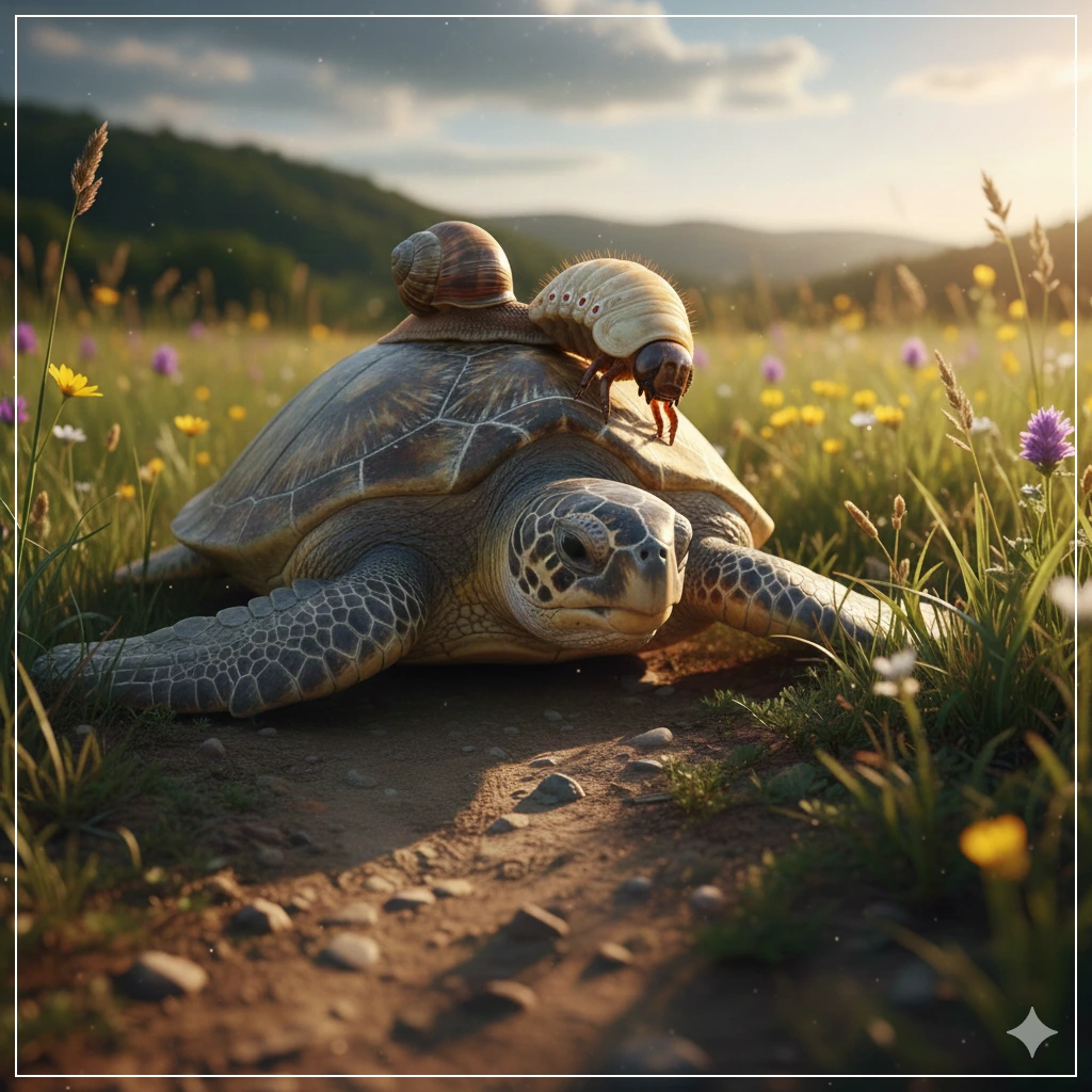 우리가 "기차는 빨라~ 빠른 것은 비행기~" 하는 것처럼, 달팽이나 굼벵이 입장에선 거북은 엄청나게 빠른 존재입니다.