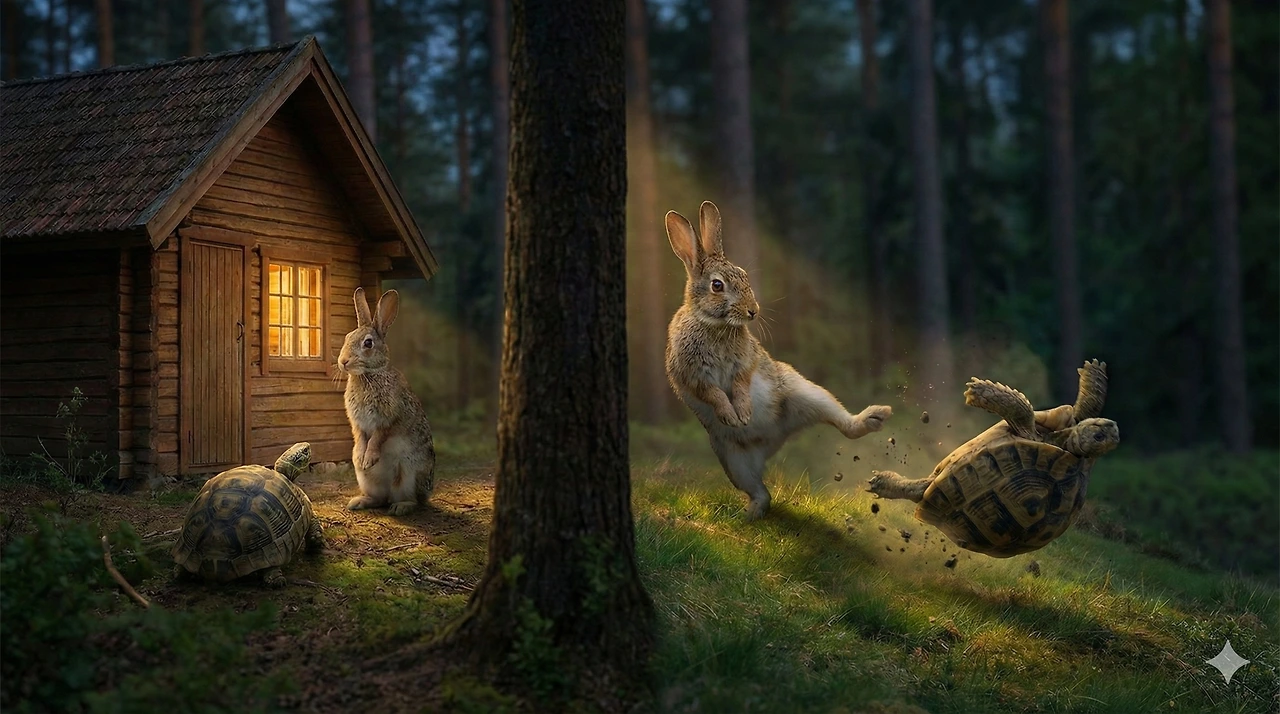 과연 이 속담이 현실에 부합할까요? 토끼와 거북에겐 정반대였던 거죠.