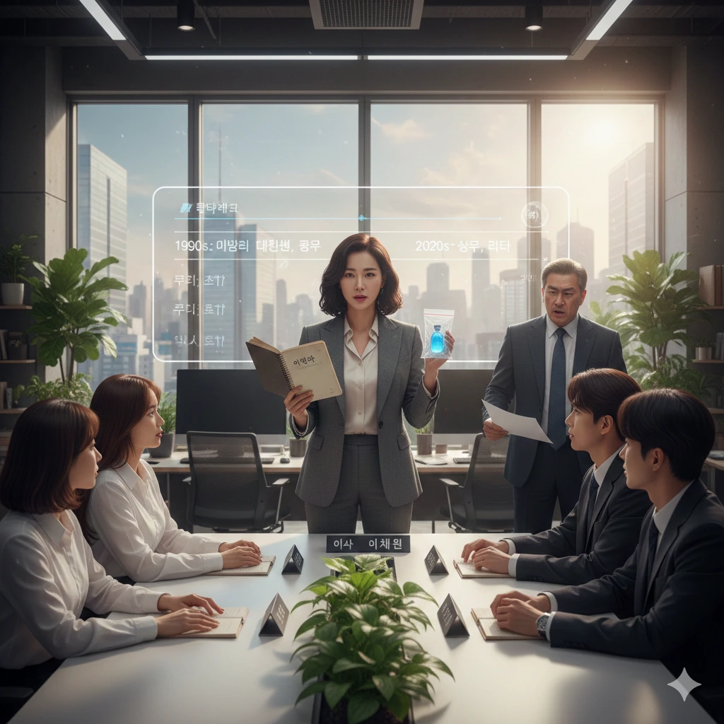 "사실 저는 여러분이 아는 20대의 이채원이 아닙니다. 저는 '젊음의 통'이라 불리는 기괴한 기술에 제 남은 생을 걸고 몸을 던진 사람입니다. 예뻐지고 싶어서가 아니라, 아이들에게 짐이 되지 않는 당당한 엄마로 살고 싶어 선택한 도박이었습니다. 저에게는 제 목숨보다 소중한 아들 강수와 딸 지윤이가 있습니다. 그 아이들과 떨어져 지내야 했던 고통스러운 시간 동안, 저는 이 젊어진 몸으로 다시 대학 과정을 밟고 밤을 지새우며 실력을 쌓았습니다. 외모는 빌려온 것일지 몰라도, 제가 여러분과 함께 일하며 보여준 열정만큼은 단 한 번도 가짜였던 적이 없습니다."