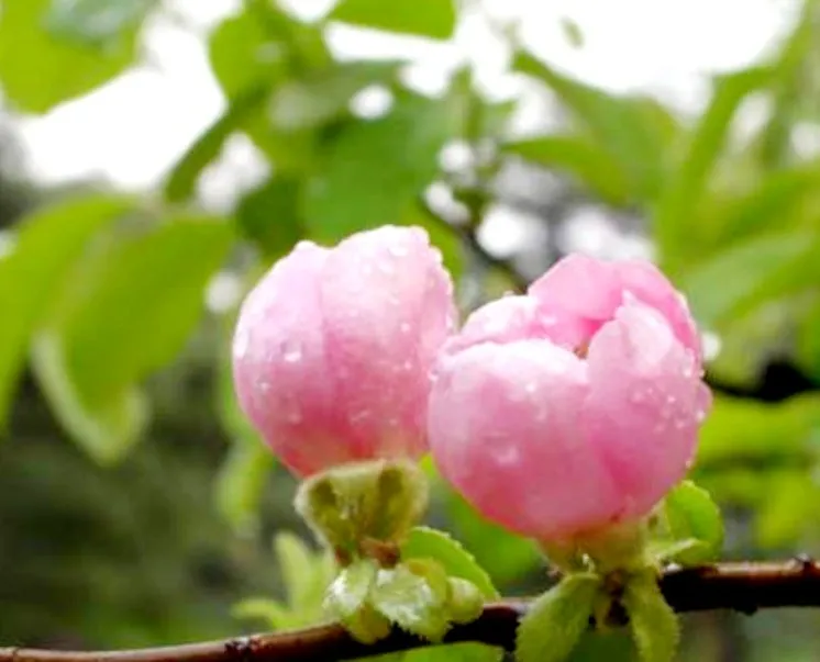 정원에 피어있는 모과꽃을 바라보며 한순간 탄성을 자아낸다