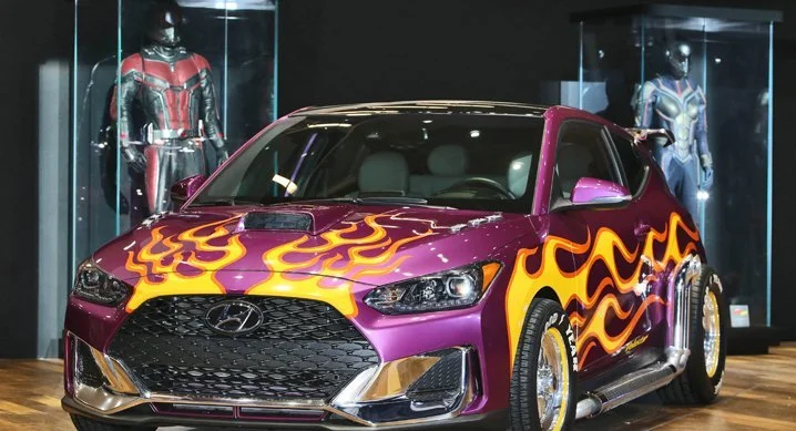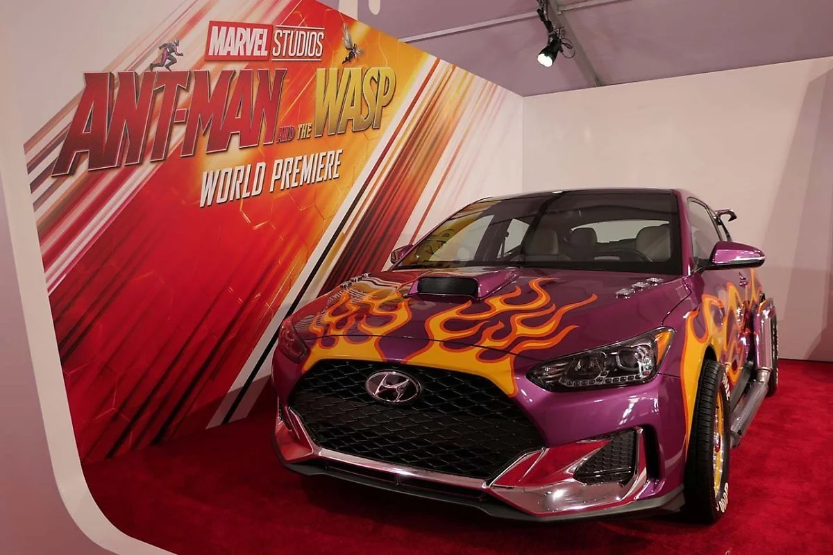 특히 영화의 배경인 샌프란시스코는 언덕들과 오르막, 내리막길이 끊임없이 이어져 현대자동차의 우수한 주행성능을 뽐낼 수 있는 최적의 조건이었습니다. 영화 촬영을 위해 특별히 개조된 ‘벨로스터 앤트맨카’는 보라색 랩핑과 화려한 노란색 불꽃 장식을 적용했고, 대형 에어인테이크 홀, 측면 배기구, 광폭 타이어 등을 적용해 벨로스터의 고성능 이미지를 관객들에게 전달했습니다.