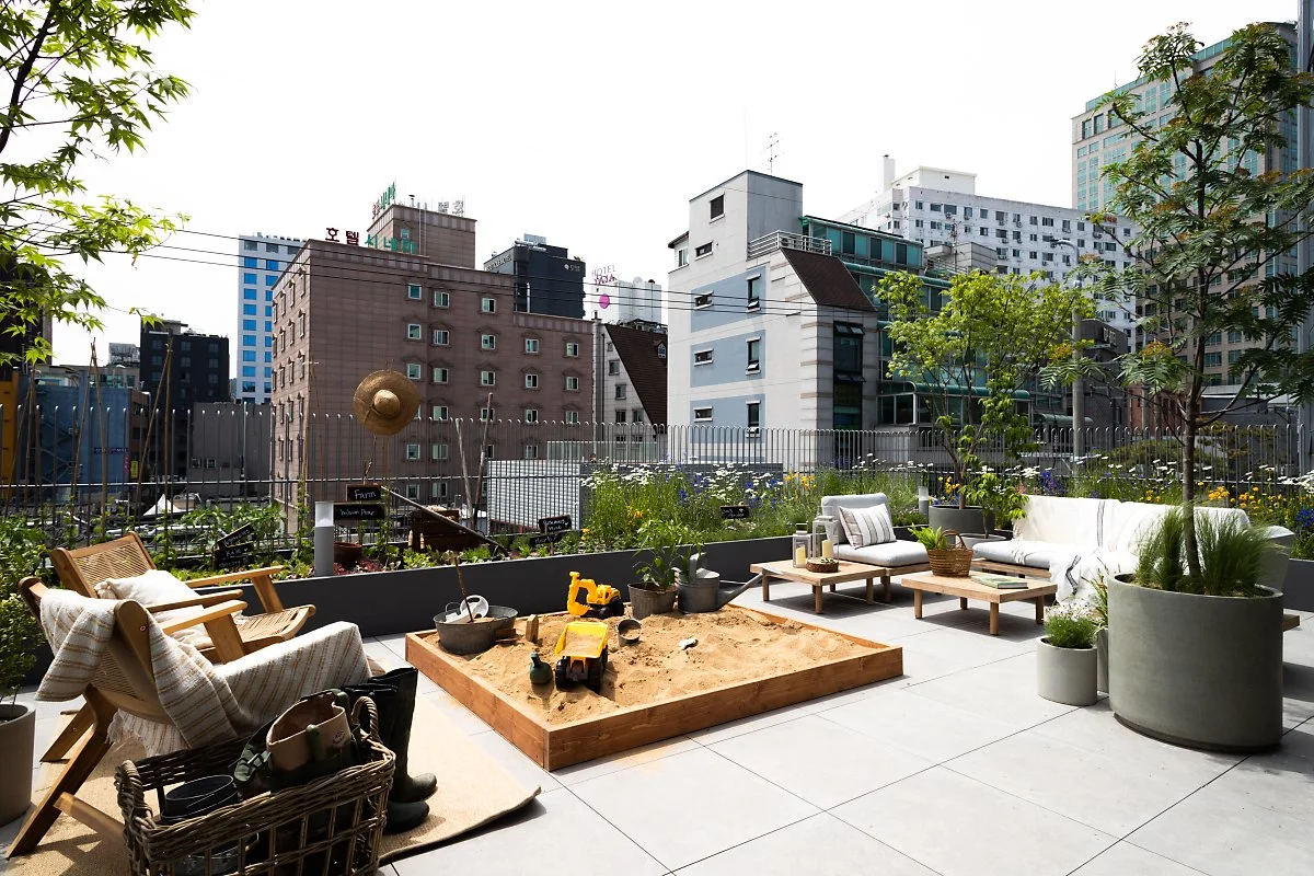 팰리세이드 하우스 A 루프탑에는 도시에서의 삶이지만, 여유로운 마음을 아이들에게 전하고 싶은 마음을 담은 파트너 가든이 마련되어 있습니다. 이 곳에서는 작은 장소이지만 내가 먹는 채소를 직접 키우고, 자연을 통해 계절의 아름다움을 느낄 때 오는 공간 이상의 가치를 경험할 수 있습니다.