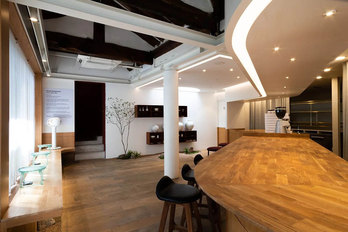 팰리세이드 하우스 B 1층에는 나의 취향이 담긴 공간과 음식을 좋아하는 사람들과 함께하는 작은 소셜 다이닝 룸이 마련되어 있습니다. 이곳은 화려하지 않지만, 먹는 사람을 생각하는 정성이 담긴 음식을 대접하는 마음이 담겨있는 공간입니다. 또한 사전 예약 고객들께 에스프레소바 Ouya에서 정성껏 준비한 커피가 제공됩니다.