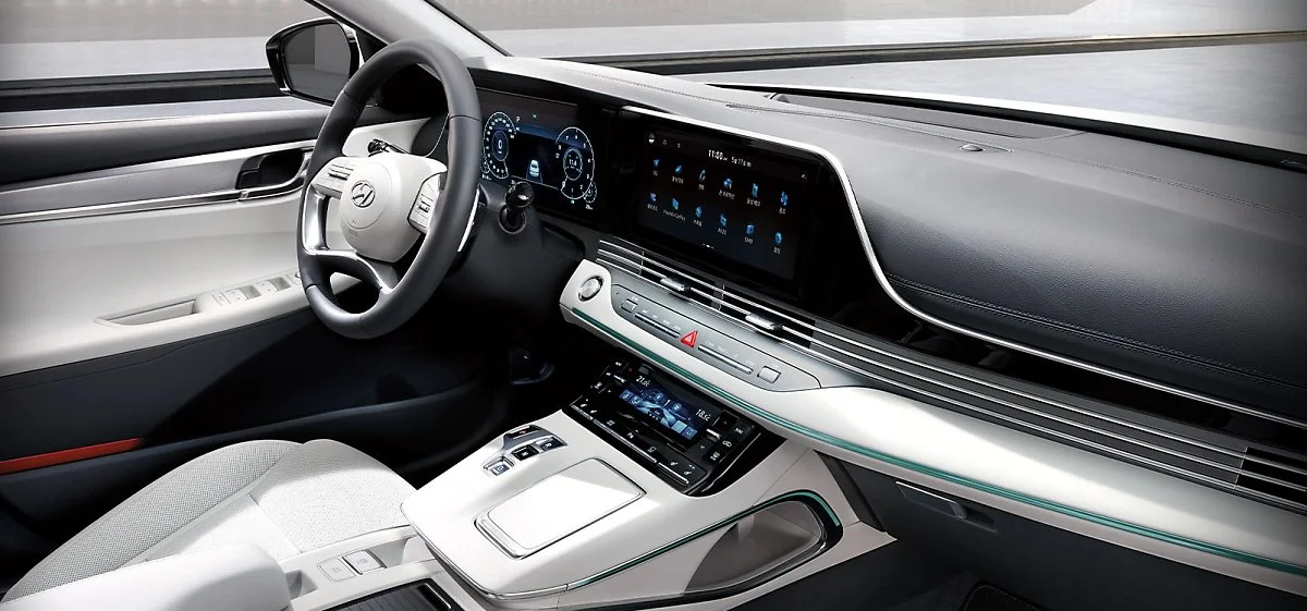현대자동차 그랜저 프리미엄 트림은 기본 트림이지만, 탄탄한 기본기와 고급감을 갖춘 것이 특징입니다. 특히 이번 연식변경 모델은 기존 4.2인치 컬러 LCD 클러스터 대신 12.3인치 풀 LCD 클러스터가 기본으로 적용되었습니다. 버튼 타입 공조기 역시 터치식 공조 컨트롤러로 변경되어 실내 고급감을 더합니다.