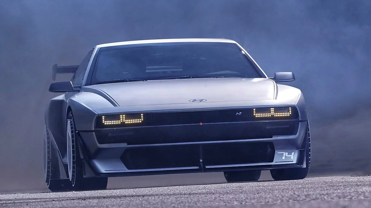 두 번째로 모습을 드러낸 N Vision 74는 브랜드 최초 수소 하이브리드 롤링랩 모델로 전기차 시대를 넘어 지속할 수 있는 ‘운전의 재미’를 제공하기 위해 개발됐습니다. N Vison 74의 차명은 N 브랜드 / Vision / 74’를 의미하며, 1974년 현대자동차의 콘셉트카였던 ‘포니쿠페’에서 영감받은 디자인이 반영됐습니다. 당시 포니쿠페는 현대자동차의 양산 스포츠카로 선보이고자 했던 모델이지만, 경제 위기 등 사회적 이유로 결국 양산에 이르지 못했던 모델입니다.
