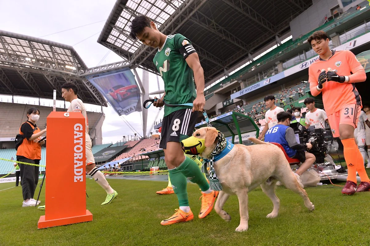 현대자동차가 반려견 헌혈 문화 조성을 위한 다양한 활동들을 이어가고 있습니다. 현대자동차는 지난 30일 전주월드컵경기장에서 진행된 전북 현대 모터스와 제주 유나이티드 간의 프로축구 K리그 경기에서 선수들이 헌혈견과 함께 입장하는 이벤트를 선보였습니다.