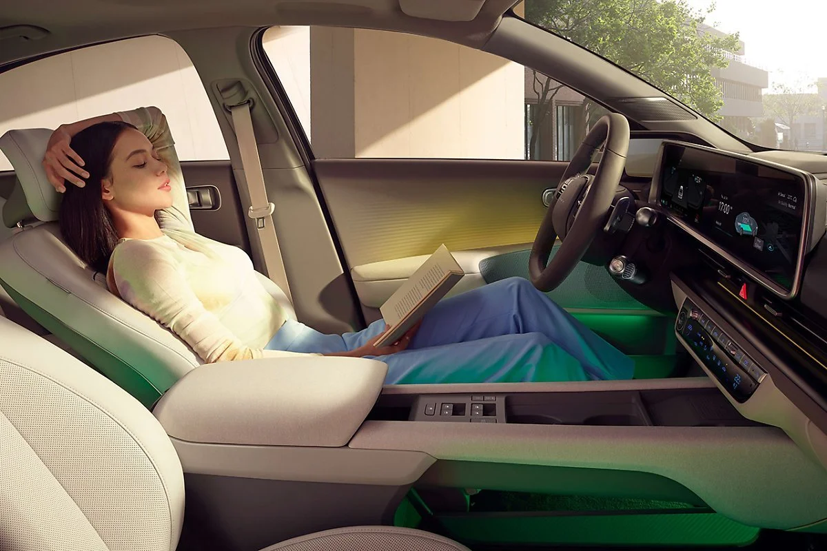 실내는 ‘안락하면서도 개인화된 나만의 안식처’라는 콘셉트를 반영했습니다. 먼저 12.3인치 듀얼 디스플레이를 통해 하이테크한 느낌을 더하고, 운전자가 차와 교감할 수 있는 다채로운 기능적 요소들을 적용했습니다. 스티어링 휠 중앙에 적용된 ‘인터렉티브 픽셀 라이트’는 ▲웰컴&굿바이 ▲주행가능상태(ready) ▲후진기어 ▲배터리 충전상태 ▲드라이브 모드 전환 ▲음성인식 상태 등을 조명으로 표시해 줍니다.