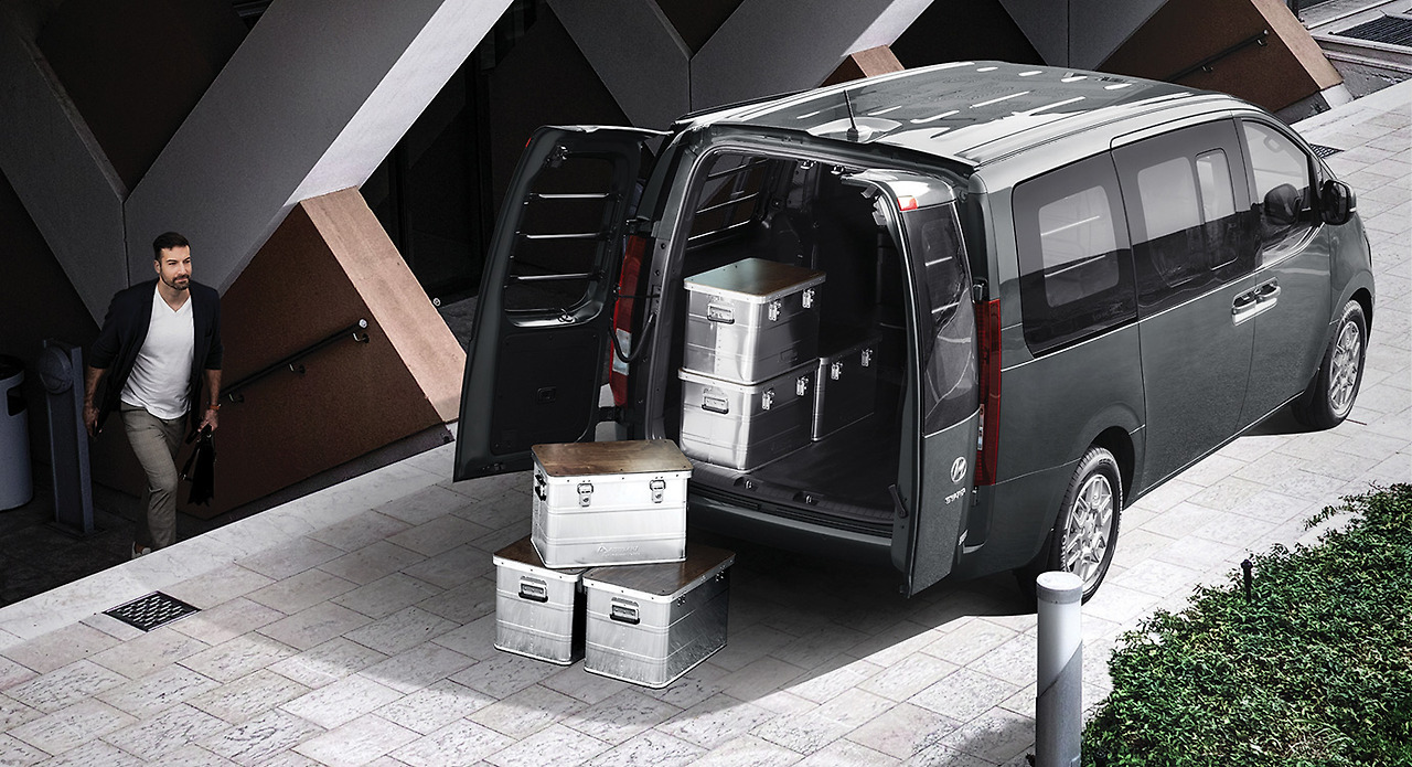스타리아 카고는 스타리아의 승객석 일부를 적재함으로 변경해 화물 운송에 최적화한 자영업자, 법인 고객을 위한 모델입니다. 승차 인원과 적재 공간 필요 유무에 따라서 3인승 모델과 5인승 모델을 선택할 수 있으며, 3세대 플랫폼으로 적재성 및 실내 거주성을 모두 개선한 것이 특징입니다. 또한 스마트 파워 테일게이트를 적용해 별도 조작 없이 차량에 가까워지면 테일게이트가 자동으로 오픈 되고, 차량에서 멀어지면 테일게이트가 자동으로 닫혀 편의성이 뛰어나며, 필요에 따라 좌우로 손쉽게 열 수 있는 트윈 스윙 도어를 선택할 수 있습니다.