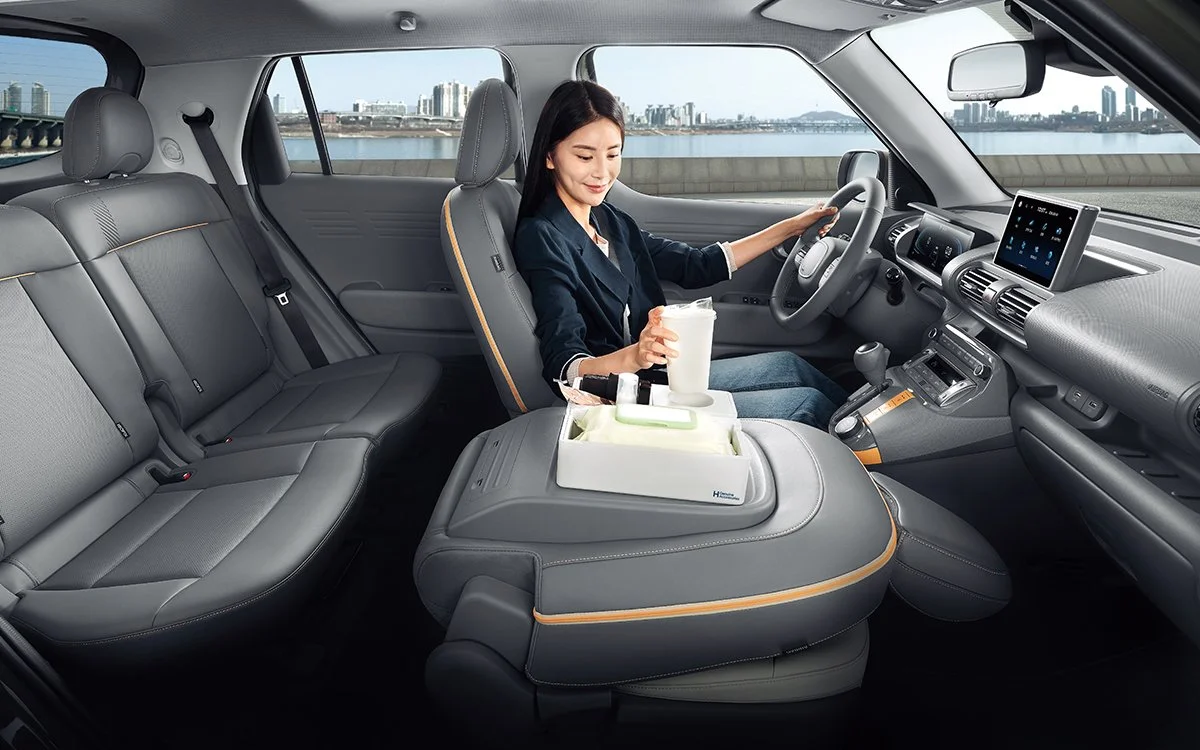 캐스퍼의 2열 시트는 3인승 시트가 적용된 경쟁모델과 달리 2인승 시트가 적용되어 착석감이 뛰어난 것이 특징입니다. 특히 적재 공간에 적재물이 없는 상태라면 슬라이딩 기능을 활용해 무릎 공간 확보가 용이하고, 동급 모델 중 유일하게 리클라이닝 기능이 적용되어 등받이 각도를 편하게 조절할 수 있습니다.