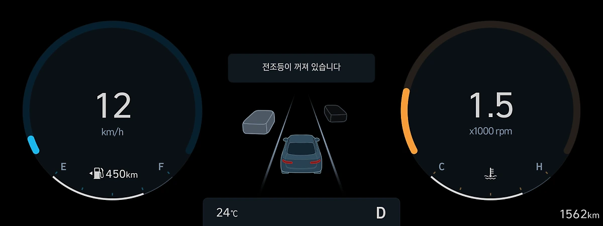 하지만 계기판 백라이트에 LED를 적용해 주간에도 선명한 시인성을 제공하는 ‘슈퍼비전 클러스터’가 널리 보급되기 시작하면서 전조등을 켜지 않아도 야간에 클러스터 정보를 확인하는데 어려움이 없어졌습니다. 여기에 최근에는 더 나아가 디스플레이로 정보를 구현하는 ‘디지털 클러스터’가 보급되며, 전조등 없이 주간과 야간 모두 밝은 화면으로 다양한 정보를 제공합니다.
