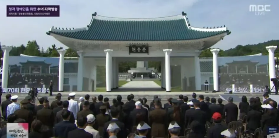 텔레비전 속, 국립묘지에 울리는 사이렌.