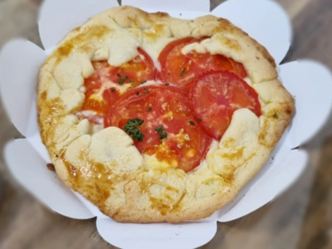 토마토 타르트 반죽 위에
