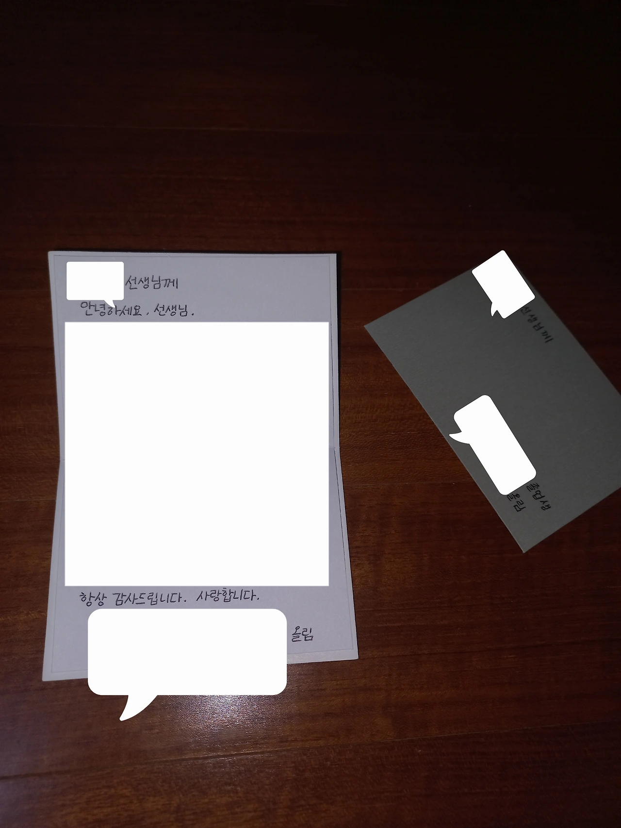 이어서 올해 영어를 가르쳐 주셨던 선생님 자리로 갔다. 항상 나를 특별히 아껴 주시던 선생님이셨다. 우리 반에서 나만 수업 시간에 대답을 해서 나만 보고 수업했다는 선생님의 말씀이 눈물겹도록 감사했다. 옆에 계시던 미술 선생님께서는 웃으시며 음료수를 챙겨 주셨다. 미술 선생님께는 편지를 못 써서 감사하면서도 죄송했다.