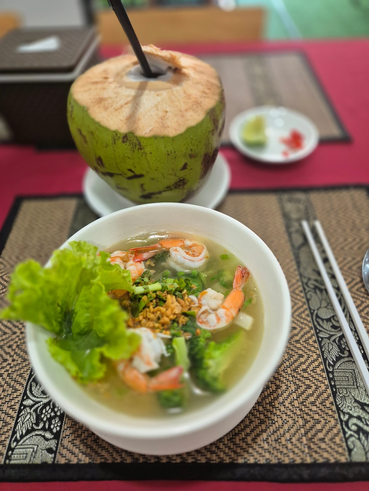 점심을 먹기 위해 숙소 인근으로 무작정 나가 보았다. 가게 입구에 행잉 화분이 잔뜩 매달려 있고 디시디아와 틸란드시아가 무성하게 늘어진 가게가 눈길을 끌어 들어갔다. 서양인 가족 한 팀이 식사를 하고 있었다. 나도 자리를 잡고 앉아 쌀국수와 코코넛 주스를 시켰다. 아무런 기대도, 계획도 없이 들어간 가게였는데 맛있어서 흐뭇했다. 숙소 조식을 신청하지 않은 터라, 브런치 먹으러 다시 방문하고 싶은 가게였다.