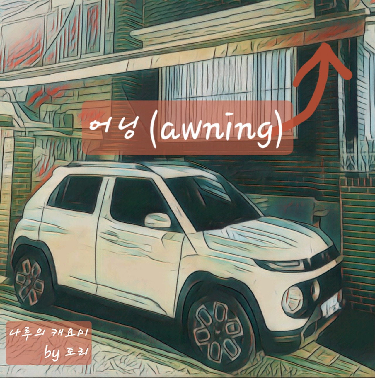 찻값 1,960만 원에 선팅이랑 블박에 6~70만 원, 탁송료 35만 원, 보험료는 다이렉트 자동차보험으로 마일리지 환급받으면 대략 60만 원, 운전연수는 정식 운전학원에서 약 30만 원, 그리고 뭔가 다른 경로의 도로연수로 30만 원.... 2,200만 원 꿀꺽! 늦은 나이에 반려카를 얻은 나루는 일단 캐요미라는 이름을 지어 주고, 캐요미의 주거 환경 개선에 나선다. 주택에 사는 나루는 캐요미를 위해 무려 600만 원 정도를 들여 주차장 공사를 하고 어닝까지 달았다. 2,800만 원 꿀꺼억!