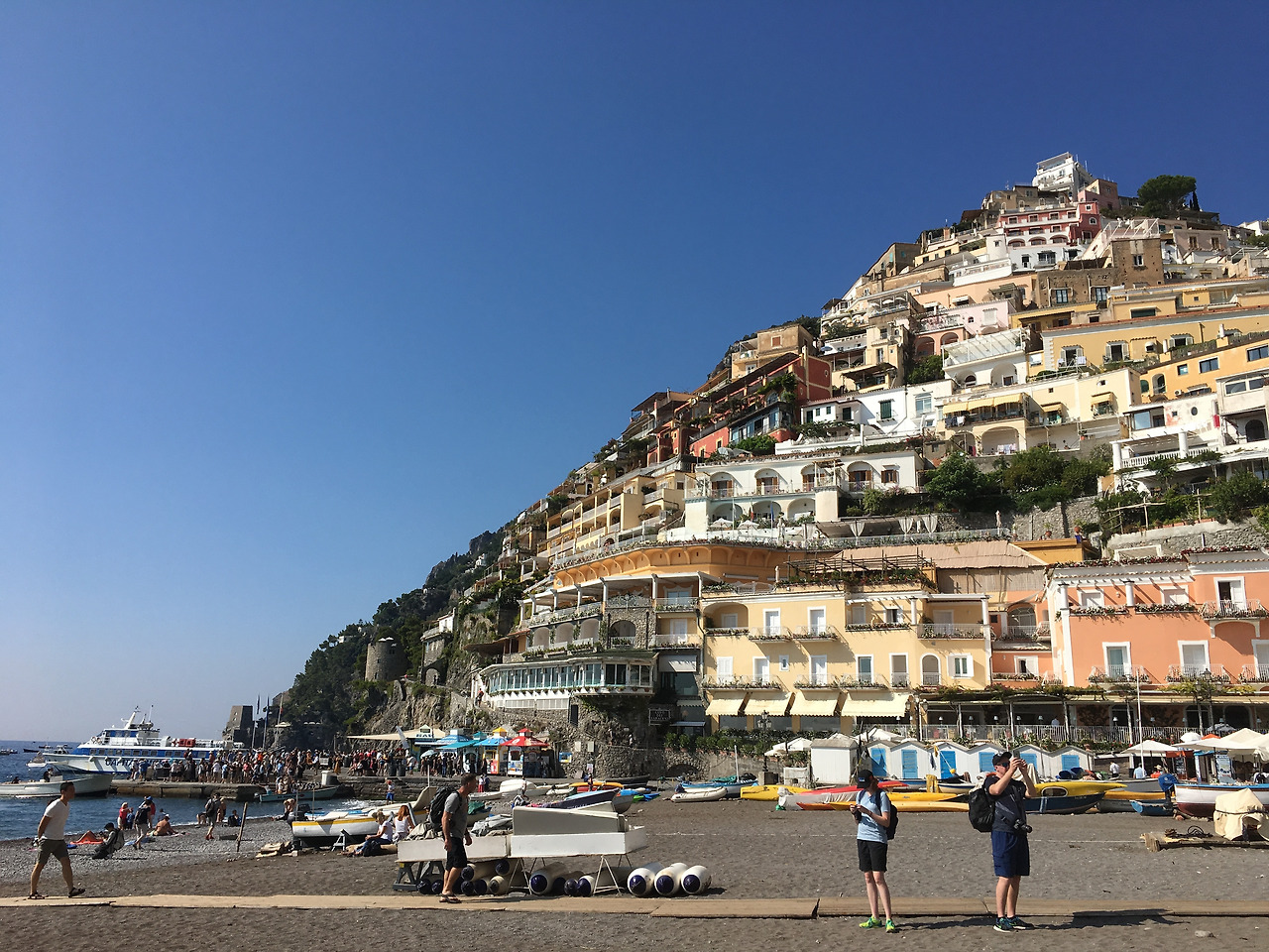 현지인들은 한여름처럼 해변에서 햇빛과 함께 바다에 들어갔으나, 난 미쳐 들어갈 생각을 못해서 발만 담그고 왔다. 포지타노와 아말피는 산 위에 형성된 마을이다 보니 해변에서 바라본 두 곳의 배경은 유사하다 시피 하였다.