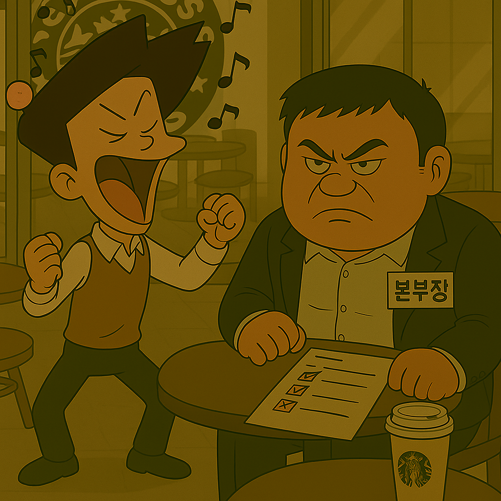 결국 '고길동'이 처장으로 있는 조직이 눈에 들어왔고, 노래를 듣지 못한 아쉬움을 달래기 위해 '고길동'에게 노래를 시켰습니다.