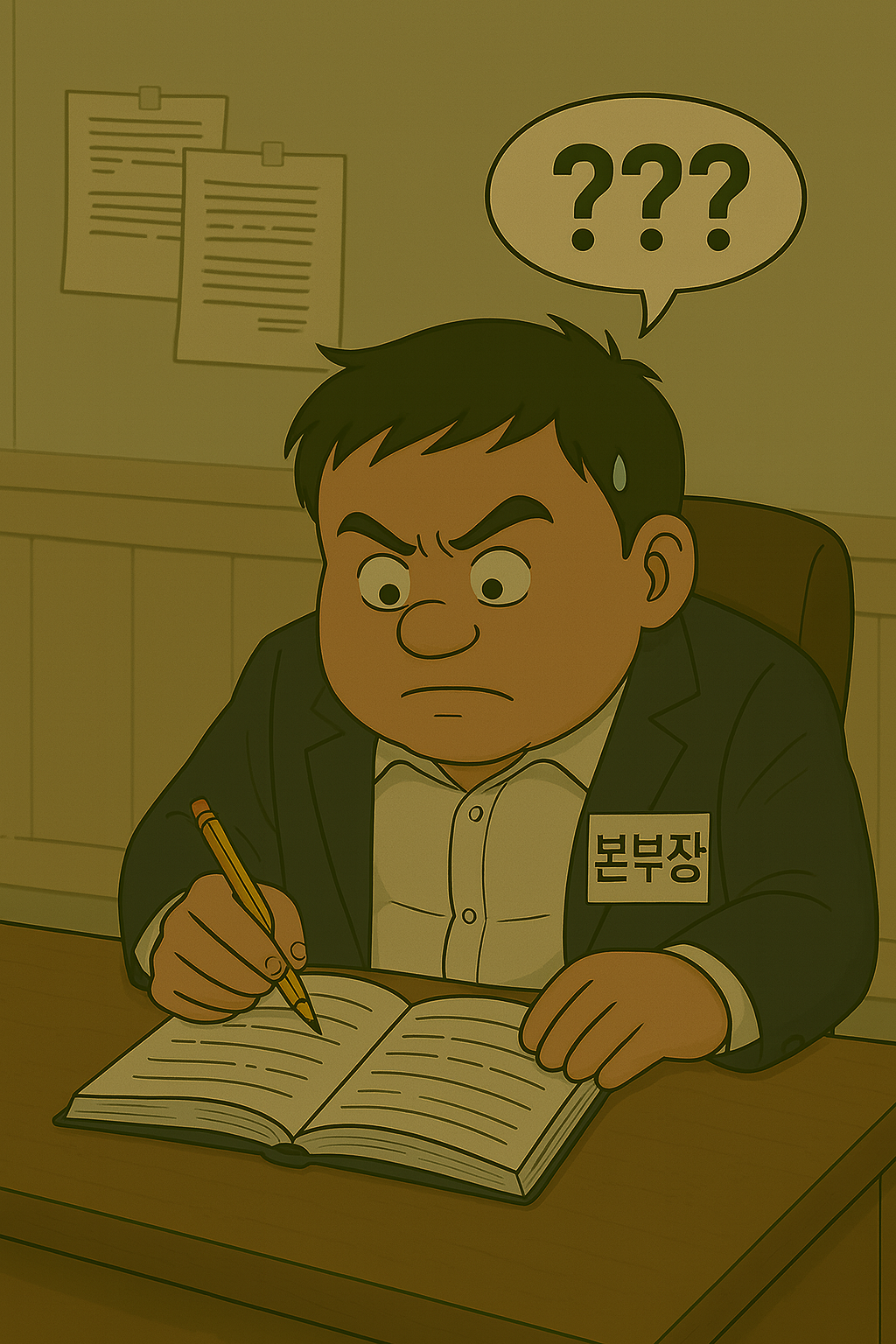 회사의 본부장인 만석은 일상생활에서 사람들에게 본인이 잘 모른다는 것에 대해 이야기하고 다니는 걸 극히 두려워합니다. 이러한 두려움을 극복하고자 만석은 아침일찍 또는 업무시간 중 여유가 있는 시간에는 본인이 모르는 부분에 대하여 꾸준히 공부를 합니다.