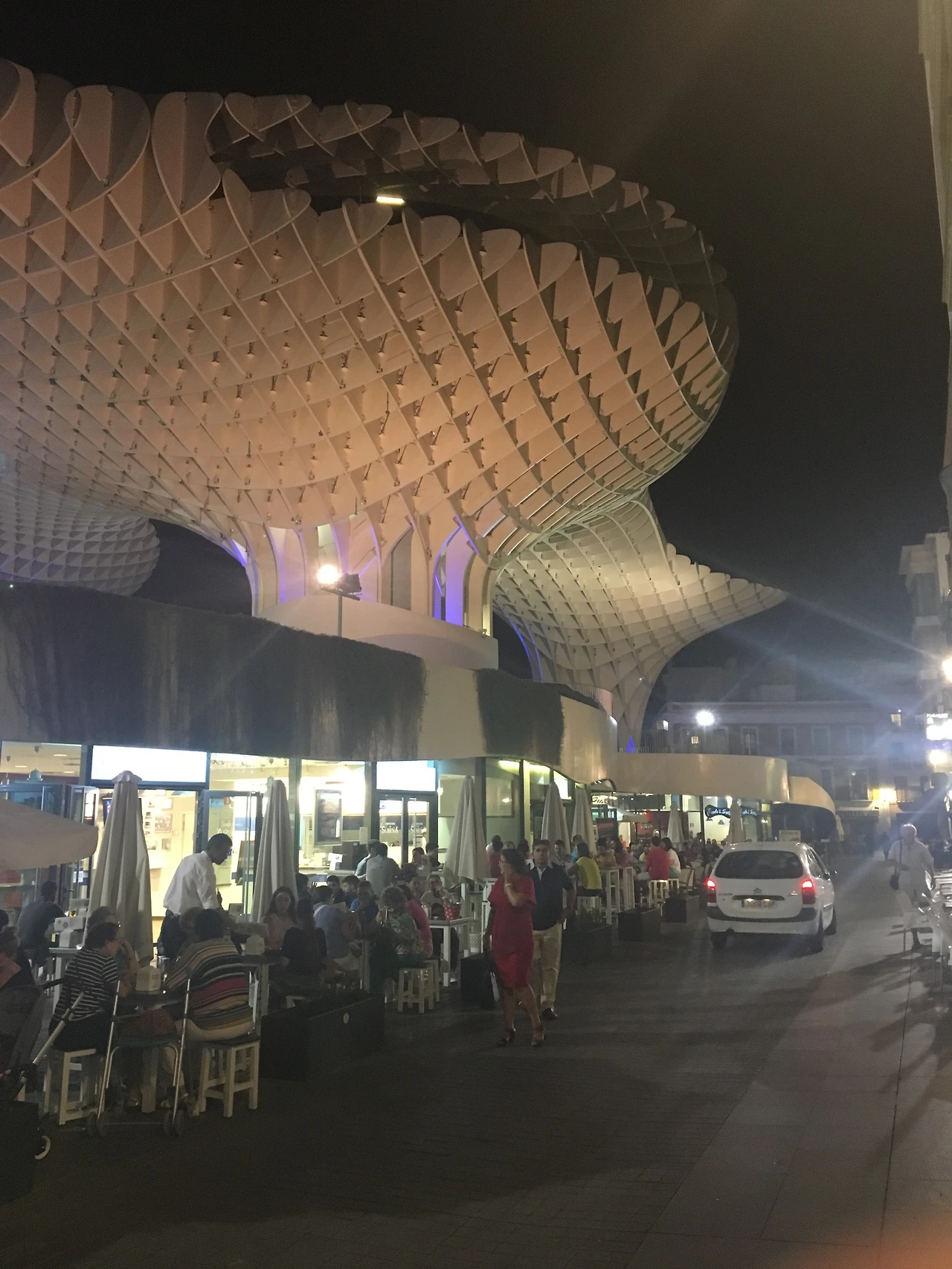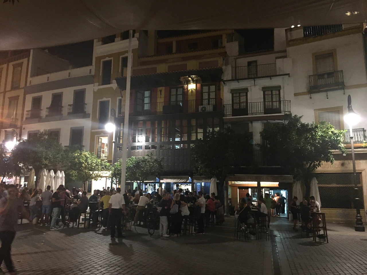 저녁이 되고 N포털사이트 여행카페에서 저녁식사를 한다는 번개글을 보고 메트로폴 파라솔 근처에 있는 레스토랑으로 이동하였다. 레스토랑으로 이동하는 한 밤 중 세비야 시내의 모습은 전혀 위험을 주지 않았으며, 사람들의 텐션은 강남과 종로에 있는 사람들과 같았다.