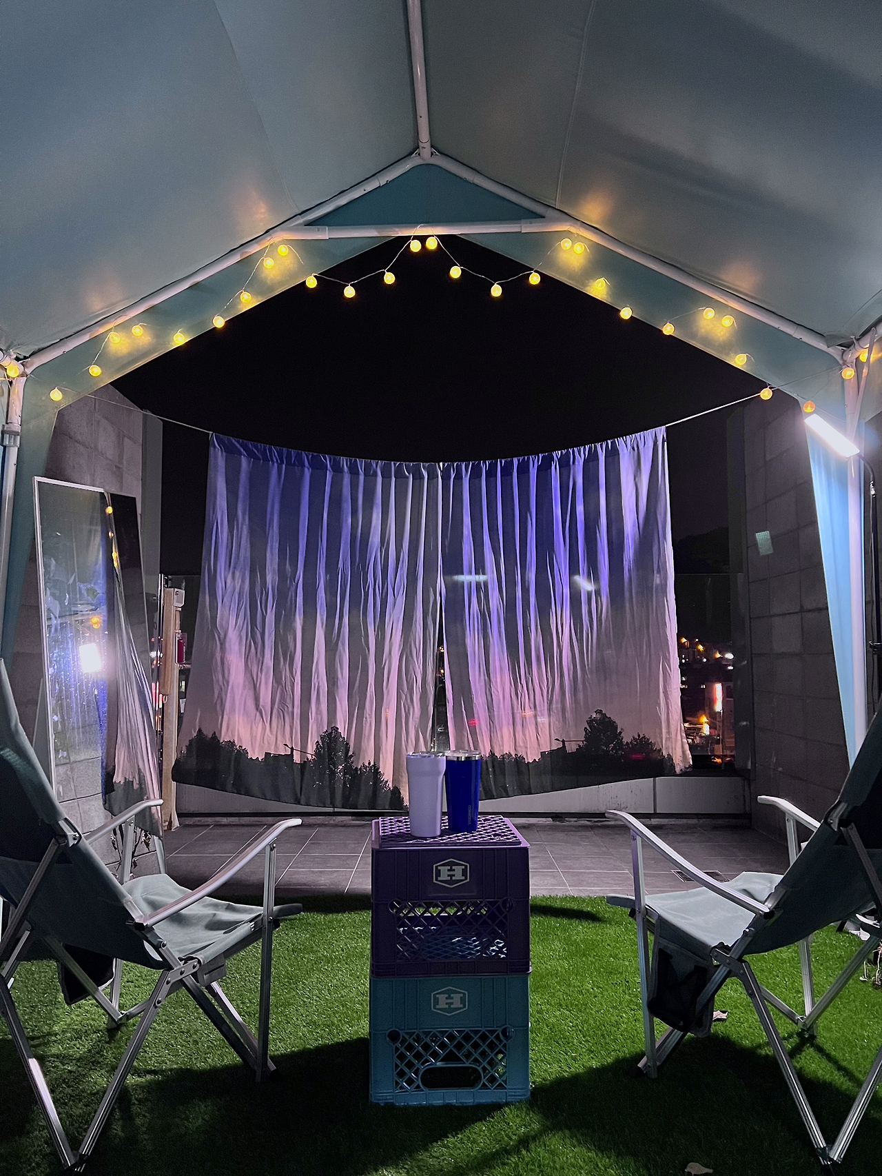 그리고 요즘은 부캐의 시대이지 않은가. 한 사람에게 여러 캐릭터가 필요하듯이 공간도 다양하게 만들 수 있어야한다. 그림을 그리는 작업의 공간, 직장을 다녀온 후 휴식의 공간, 캠핑을 하는 공간, 정원을 가꾸는 공간. 공간을 어떻게 꾸미느냐에 따라 하나의 공간이 다양하게 쓰일 수 있고, 공간을 다양하게 만들면서 삶을 구성해간다. 삶이 다채로워질수록 공간도 다채로워지고, 공간이 다채로워질수록 삶도 다채로워진다. 이렇게 공간을 다양하게 쓸 수 있었던 것도 넓은 테라스가 한몫했다.