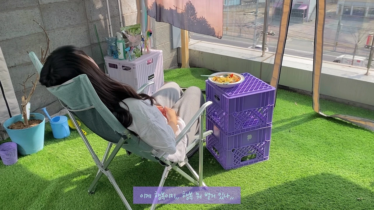 캠핑은 해본 적 없지만 캠핑 용품은 다 있는 사람. 나중에 차가 생기면 꼭 혼캠을 해보고 싶어요. 또 유명해서 왁자지껄한 캠핑장이 아닌 아는 사람만 아는 조용하고 고즈넉한 분위기의 캠핑장에서 안온한 시간을 보내고 싶어요. 테라스도 너무 좋지만 바로 앞에 있는 도로 때문에 조금 시끄러워서 아쉽,,