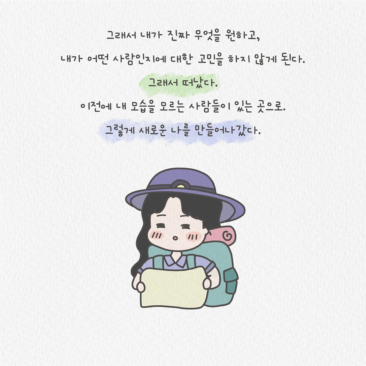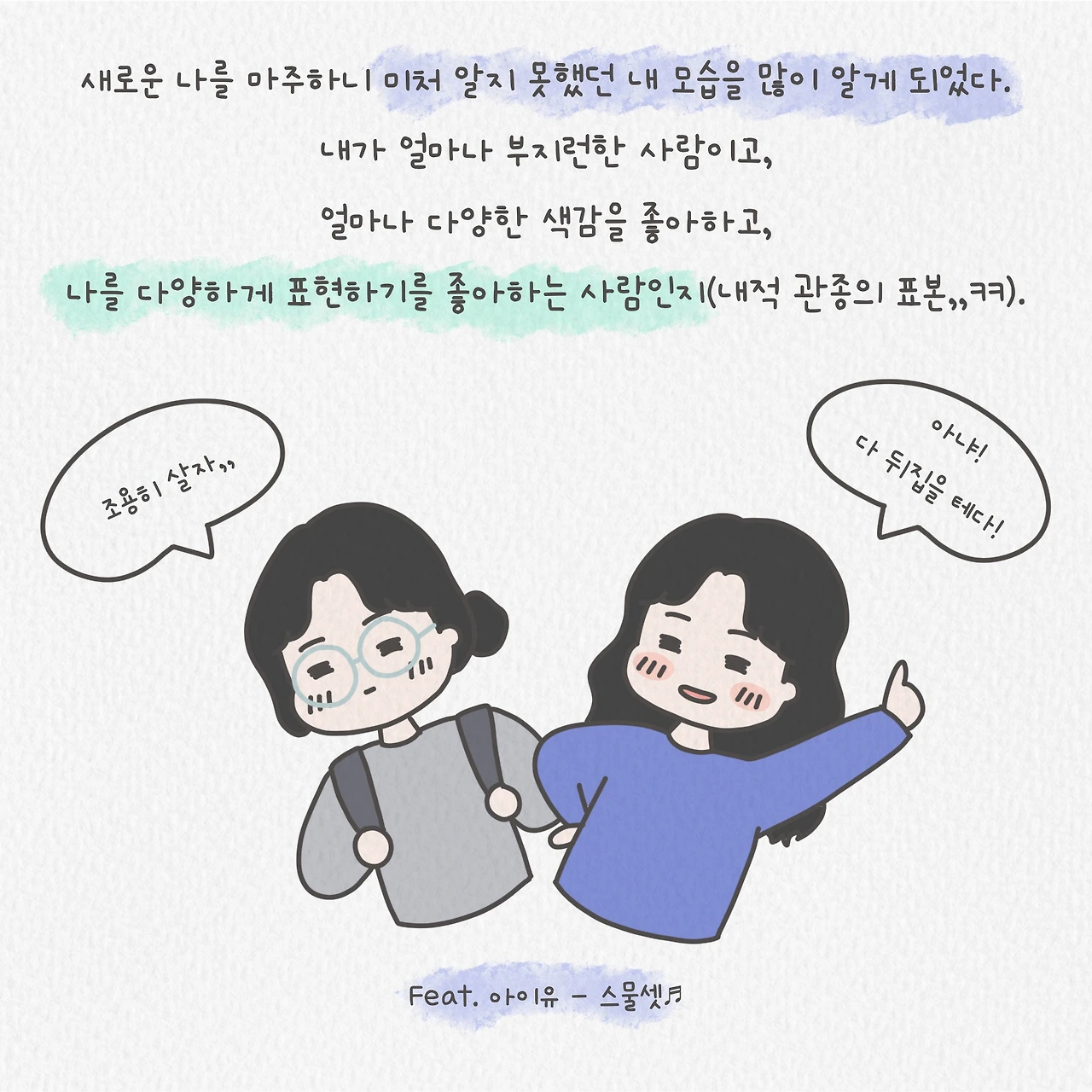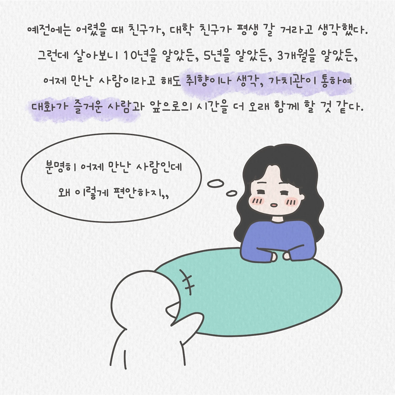 이전에 올렸던 글을 그림일기로도 그려봤어요ㅎㅎ 그만큼 제가 간직하고 싶은 생각인 것 같아요. 많은 혼란 속에 도망쳐온 것 같은 이곳에서 참 많은 일들이 있었던 것 같아요. 여전히 온전하지 못하지만 조금씩 저를 알아갈 수 있어서 감사하고, 나답게 꾸민 이 공간이 그 과정을 더욱 도와주는 것 같아요ㅎㅎ 오늘도 다들 고군분투하느라 고생 많으셨고, 각자의 안전공간 안에서 재충전하는 시간이 되길 바랄게요 :-)