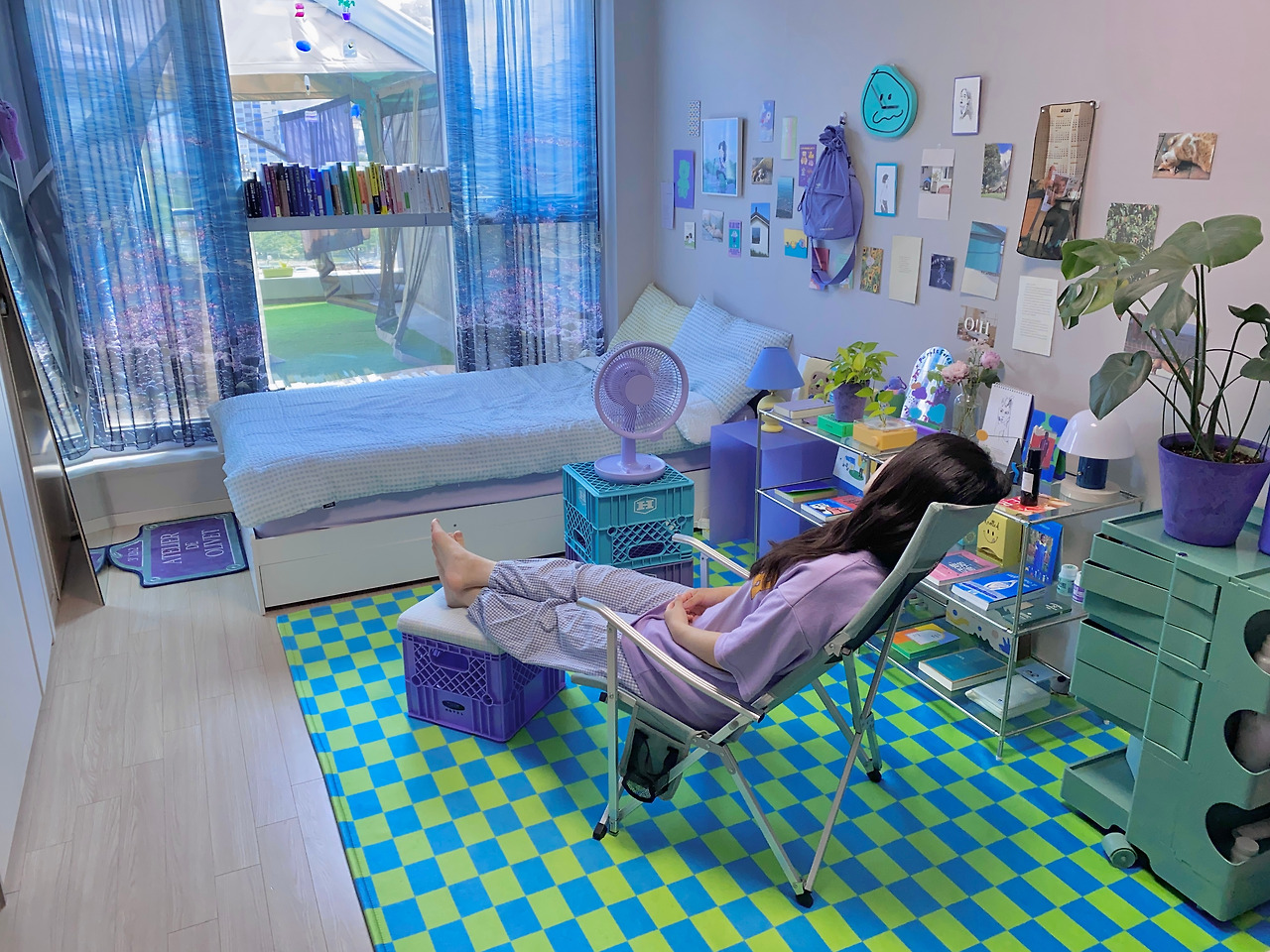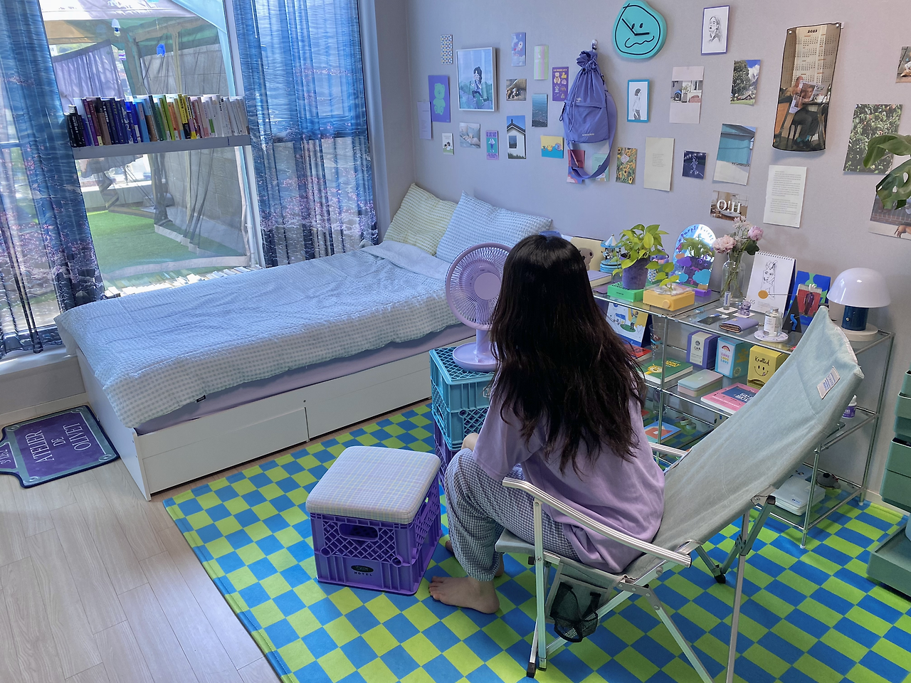 대부분 물건이 보라색을 찾기 어렵지만 그중에 특히 선풍기에 보라색이 있을 거라곤 상상도 못했다. 지금의 이 선풍기를 만나기 전까지는. 자취를 하고 작은 선풍기를 사려고 인터넷 쇼핑을 하던 중 이 보라색 선풍기를 찾은 건 보물찾기와 같이 기뻤다. 그렇게 영롱한 색감과 시원함까지 퍼플포레스트의 아이덴티티를 확고하게 해주고 있는 친구다. 올 여름도 이곳을 청량하고 신비로운 숲으로 만들어주렴